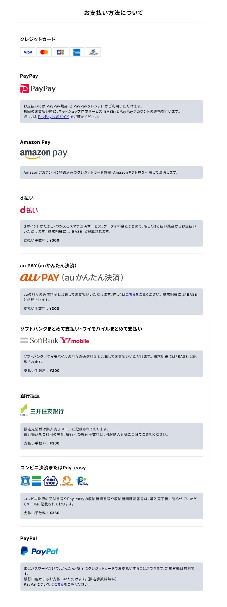 ▼現在お取り扱い可能なお支払い方法はこちらです。