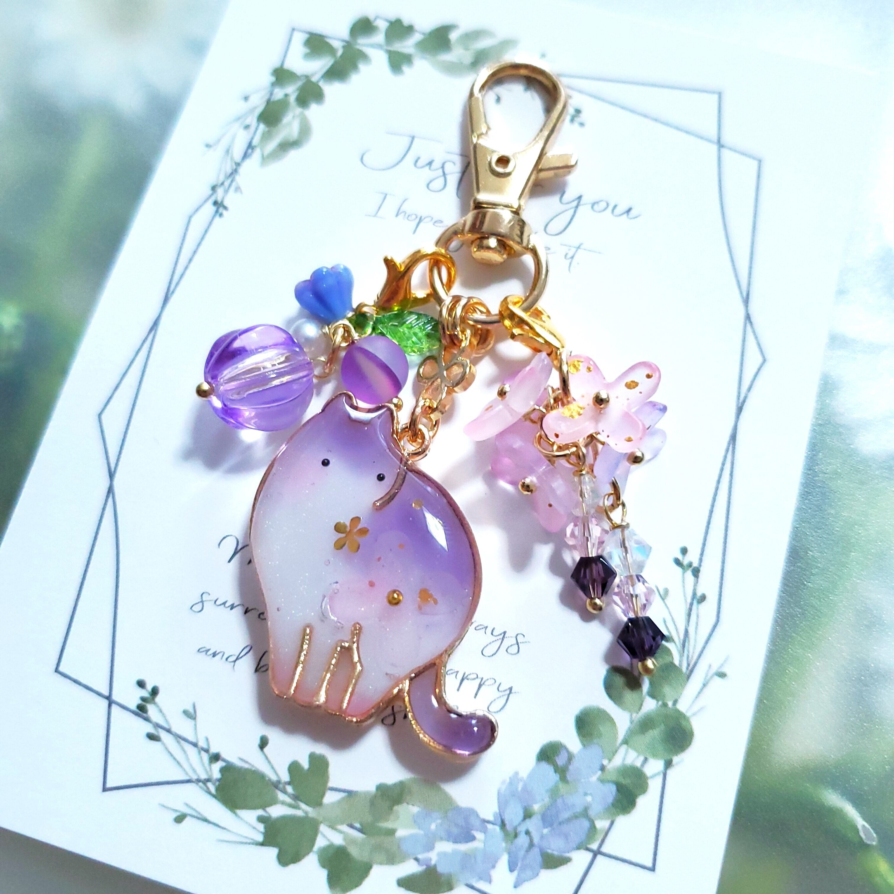 初夏のお散歩にゃんこ ✦ 葵色 ✦ キーホルダー