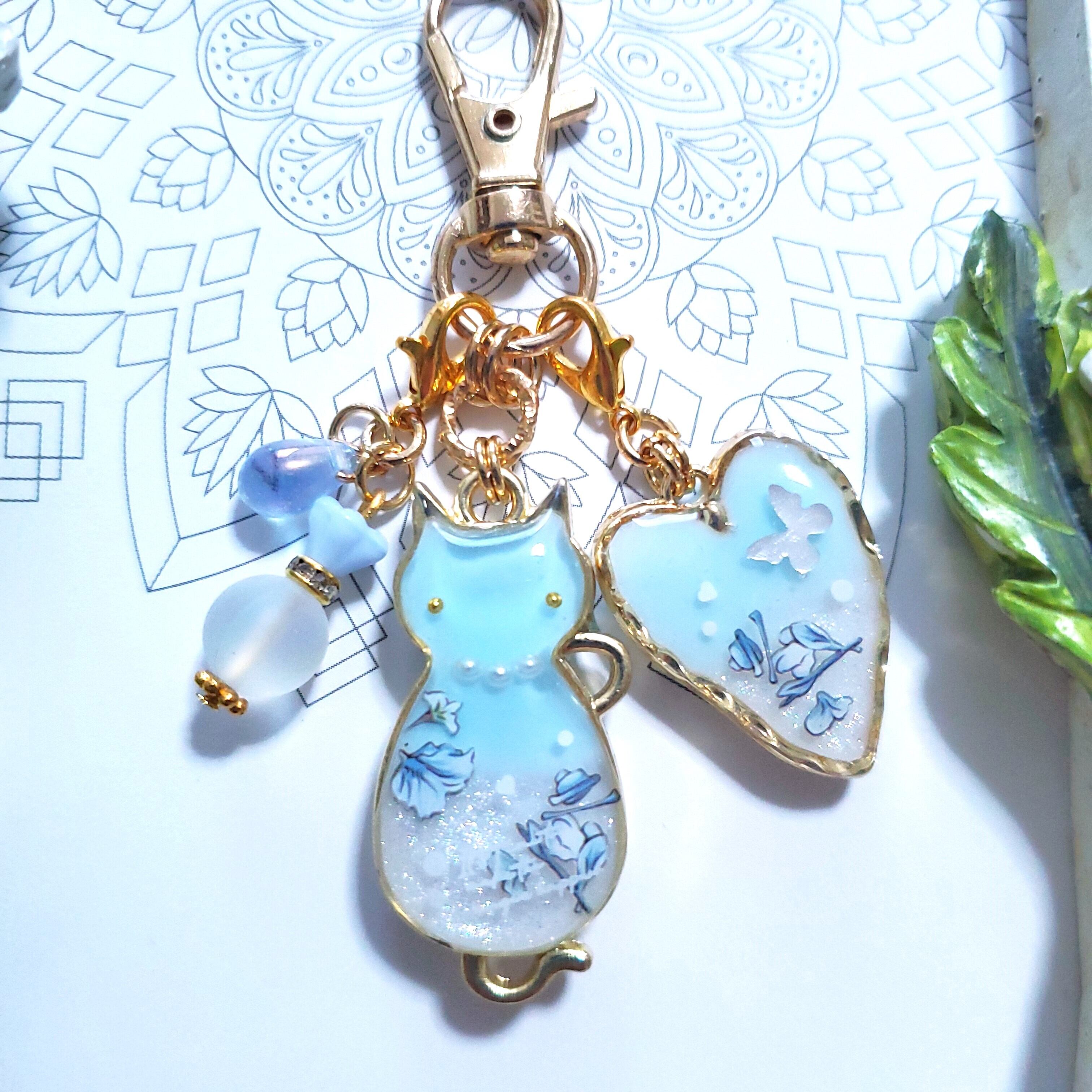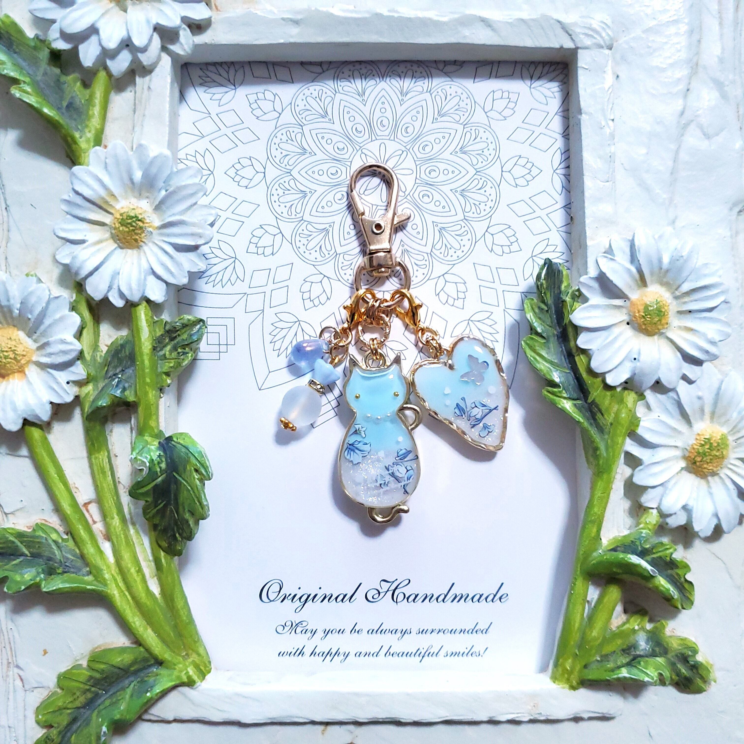 花ねこ ✦ macaron・Light blue ✦ キーホルダー