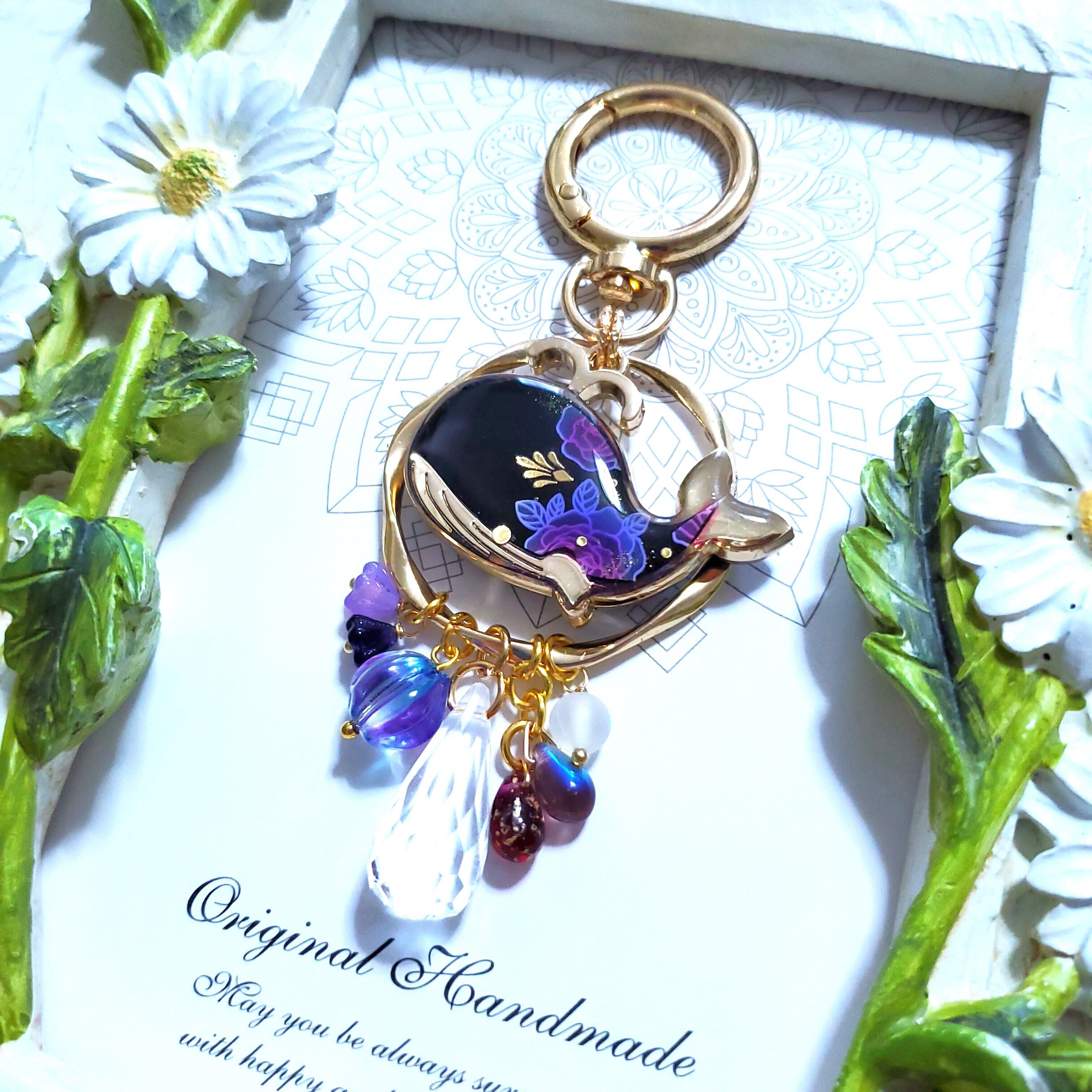 華くじら ✦ 黒紫 ✦ バッグチャーム