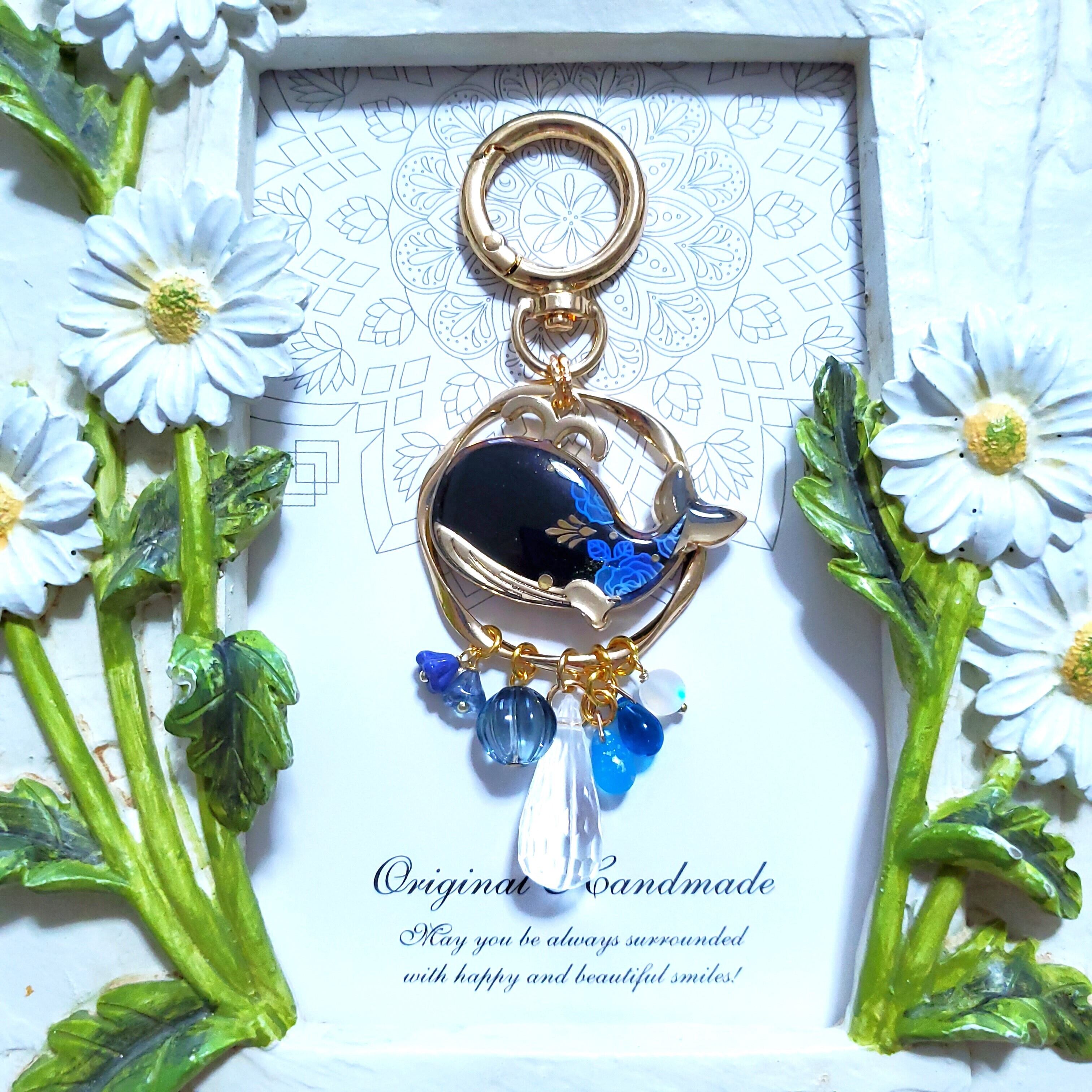華くじら ✦ 黒青 ✦ バッグチャーム