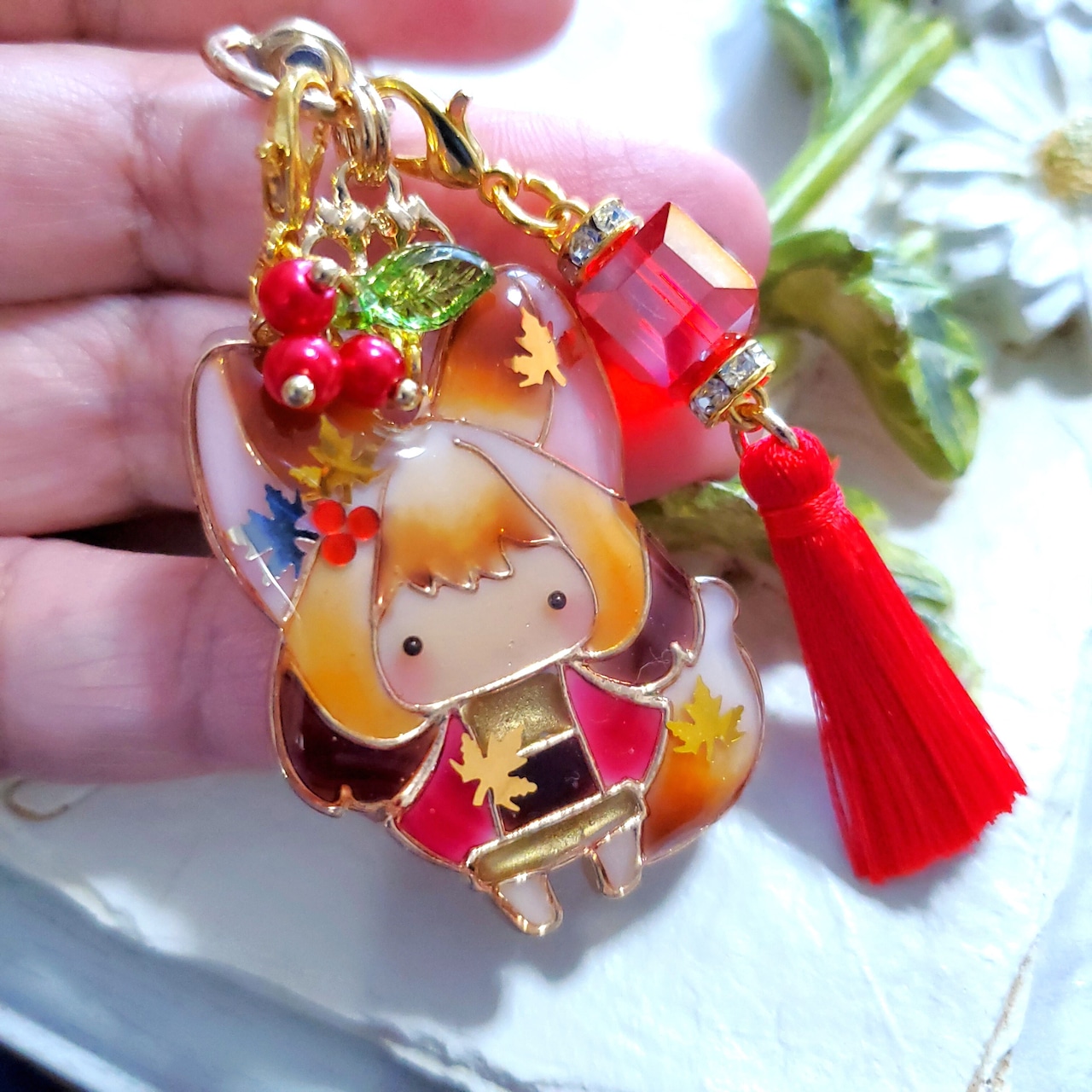 きつねっこ ✦ 赤もみじ ✦ キーホルダー