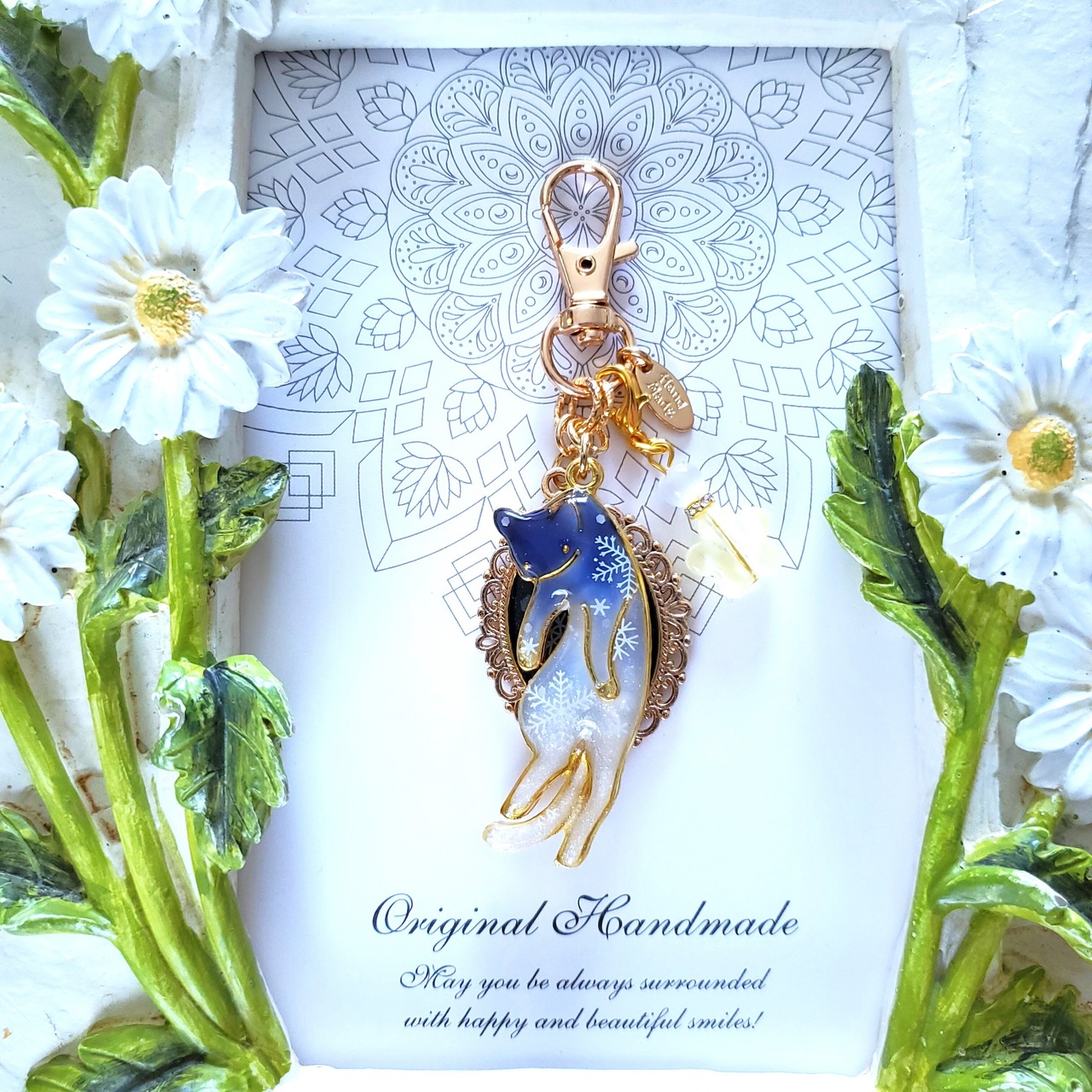 ゆらりんにゃんこ ✦ ゆきねこ(ネイビー) ✦ キーホルダー