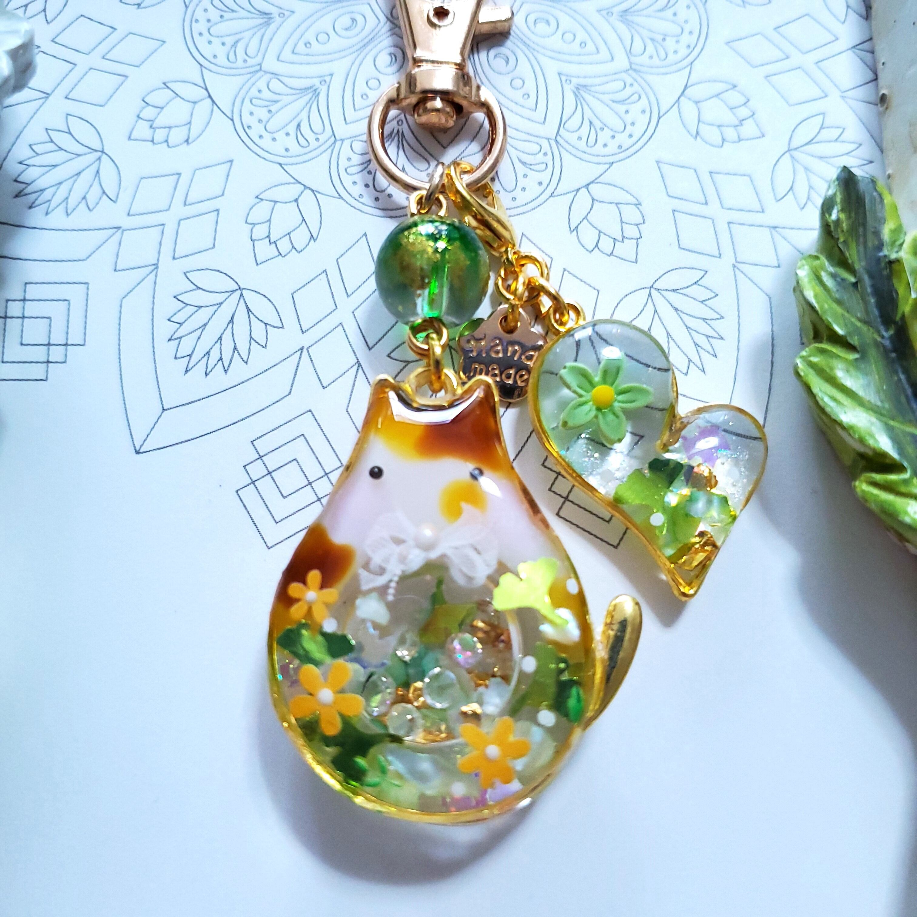 まんまるシャカシャカにゃんこ ✦ イチョウ ✦ キーホルダー