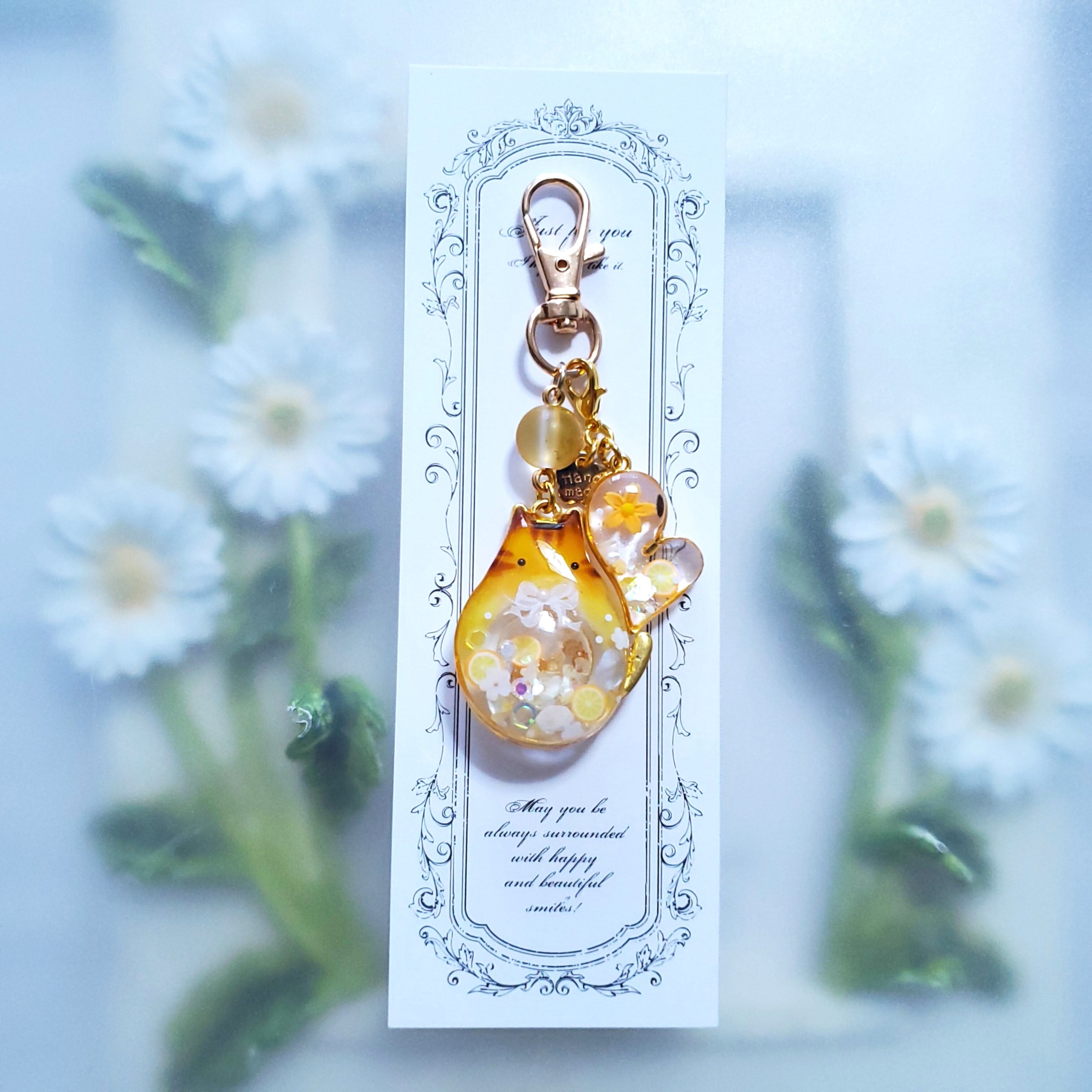 まんまるシャカシャカにゃんこ ✦ みかん ✦ キーホルダー