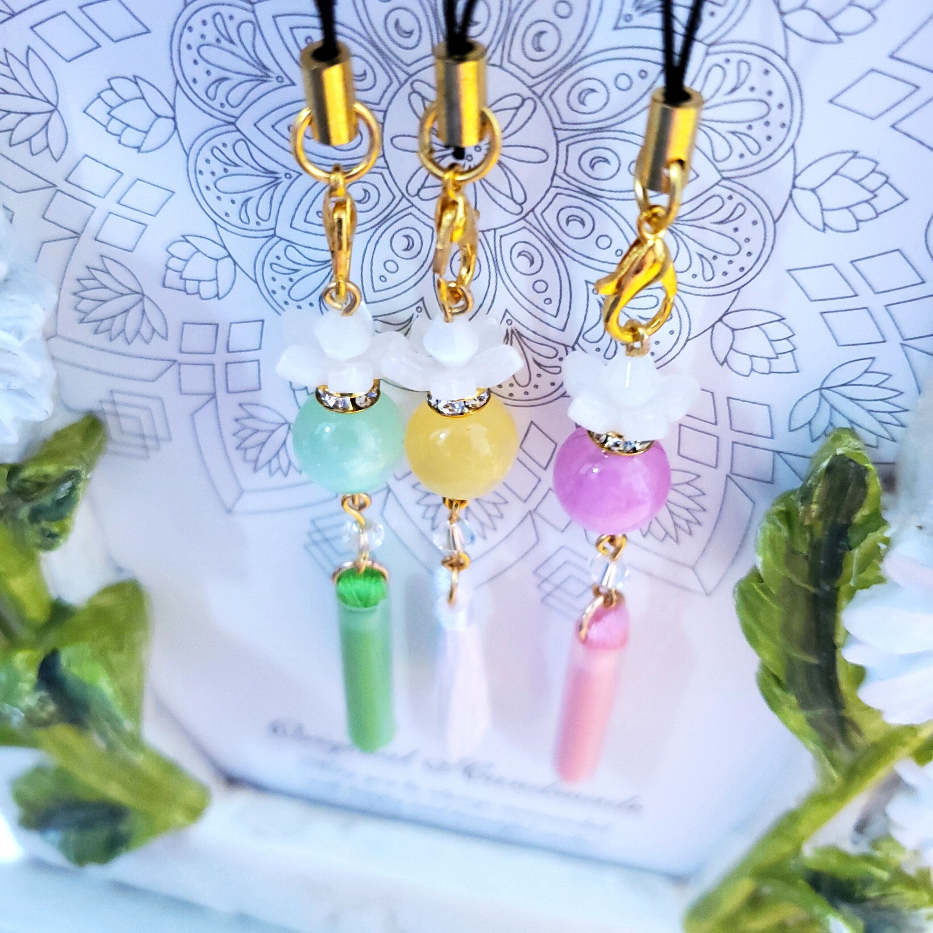 ホワイトカラーのロータスと可愛いキャッツアイのタッセルです。