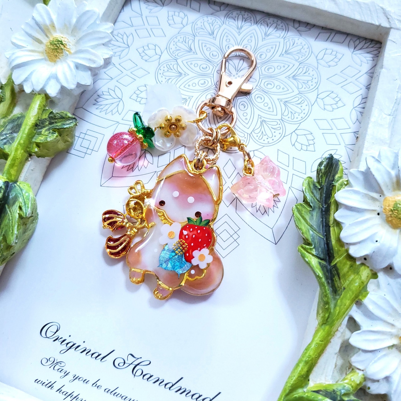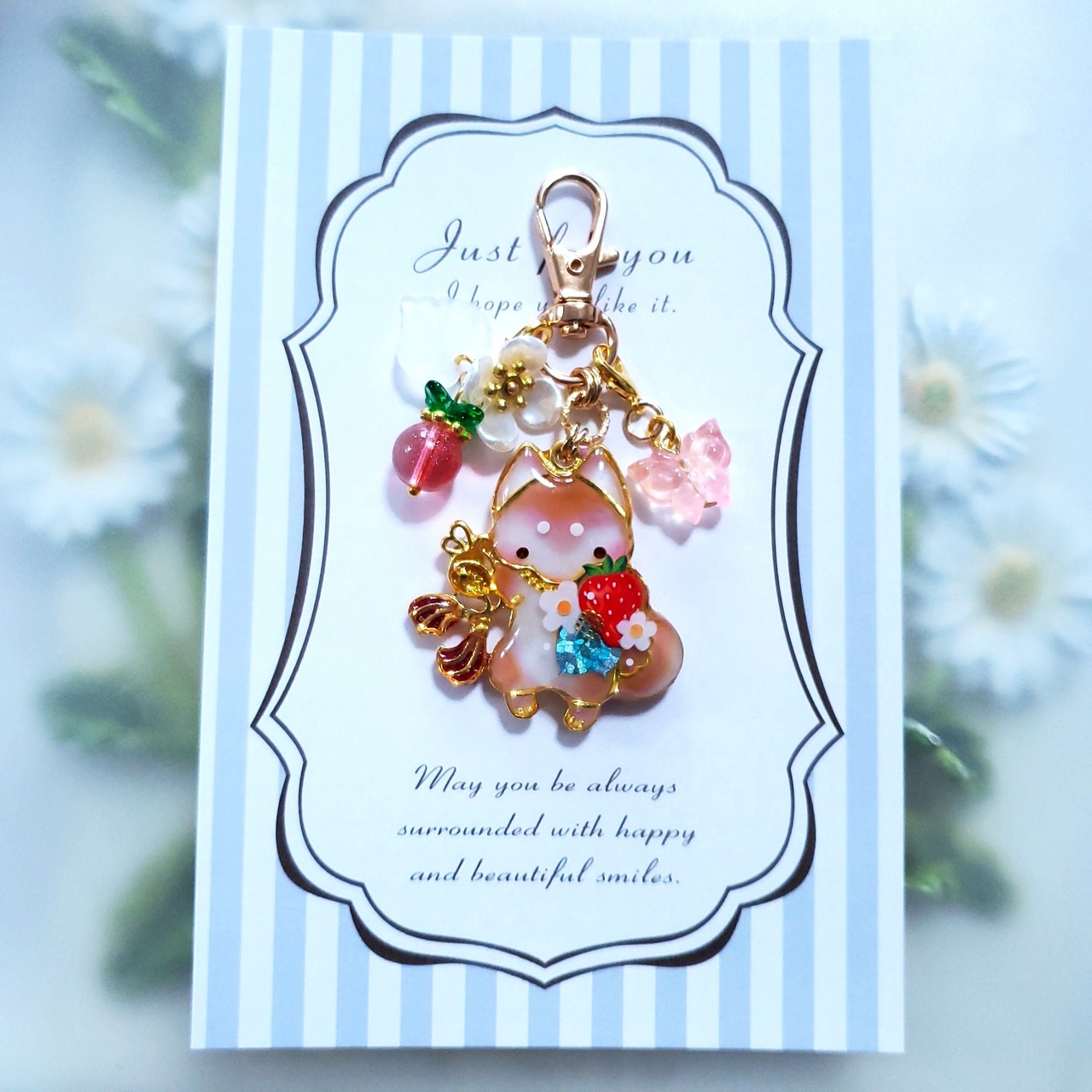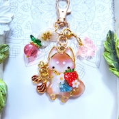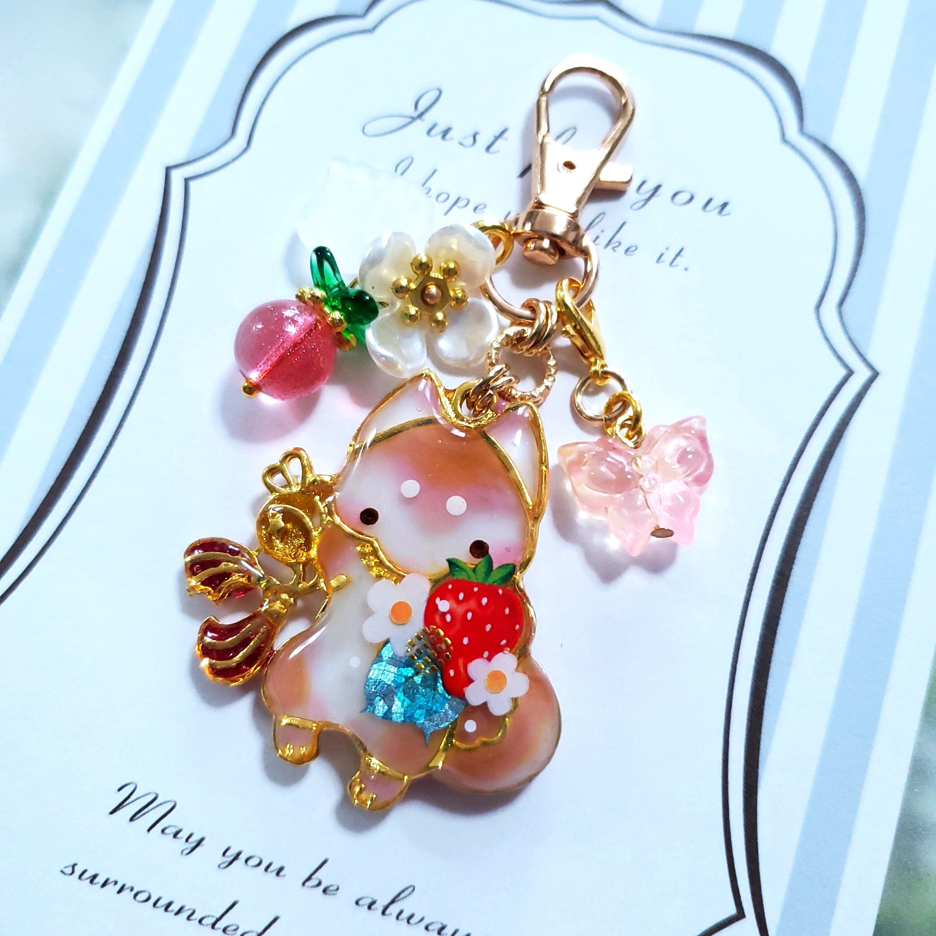 くるりんしっぽの招き狛犬 ✦ いちごミルクティ ✦ バッグチャーム