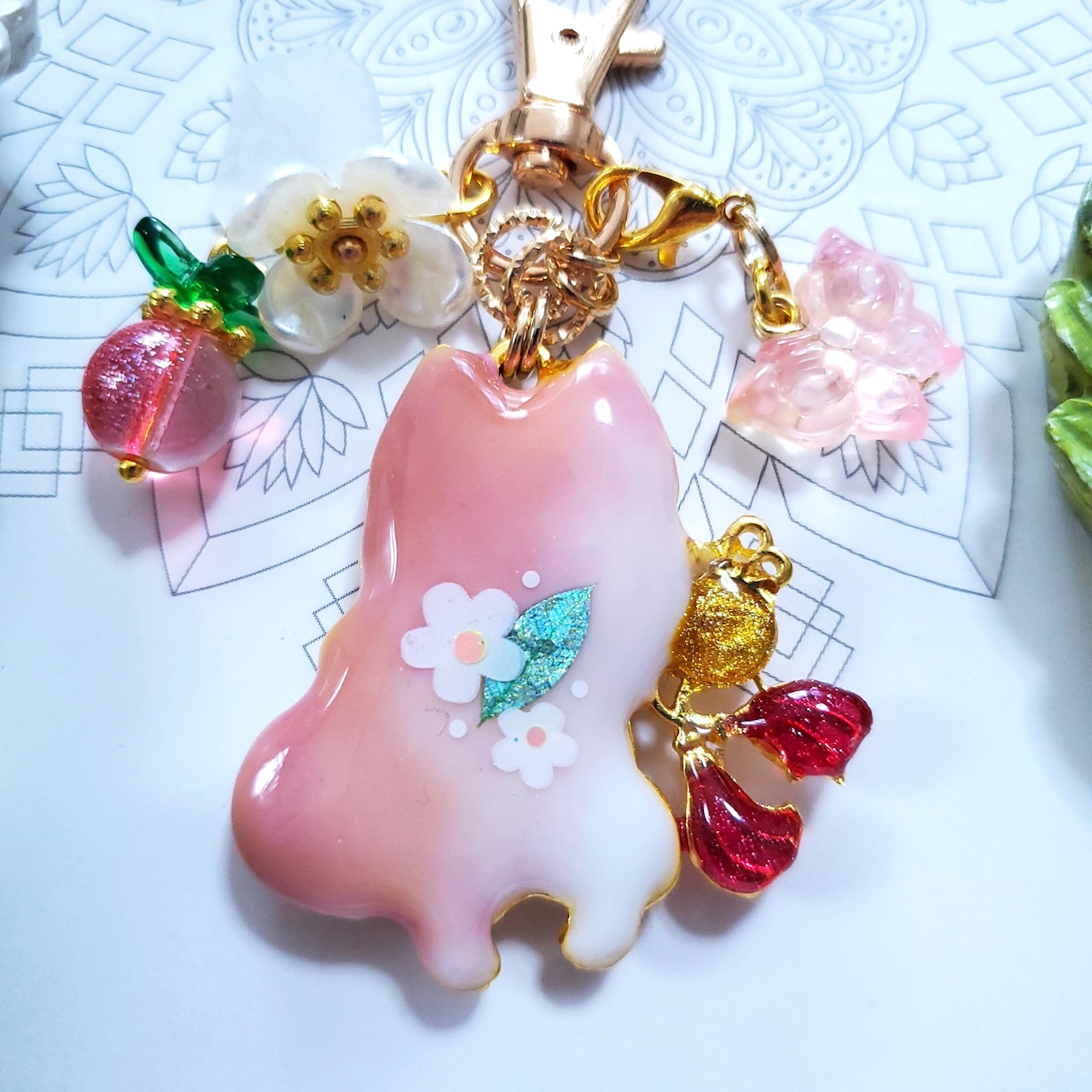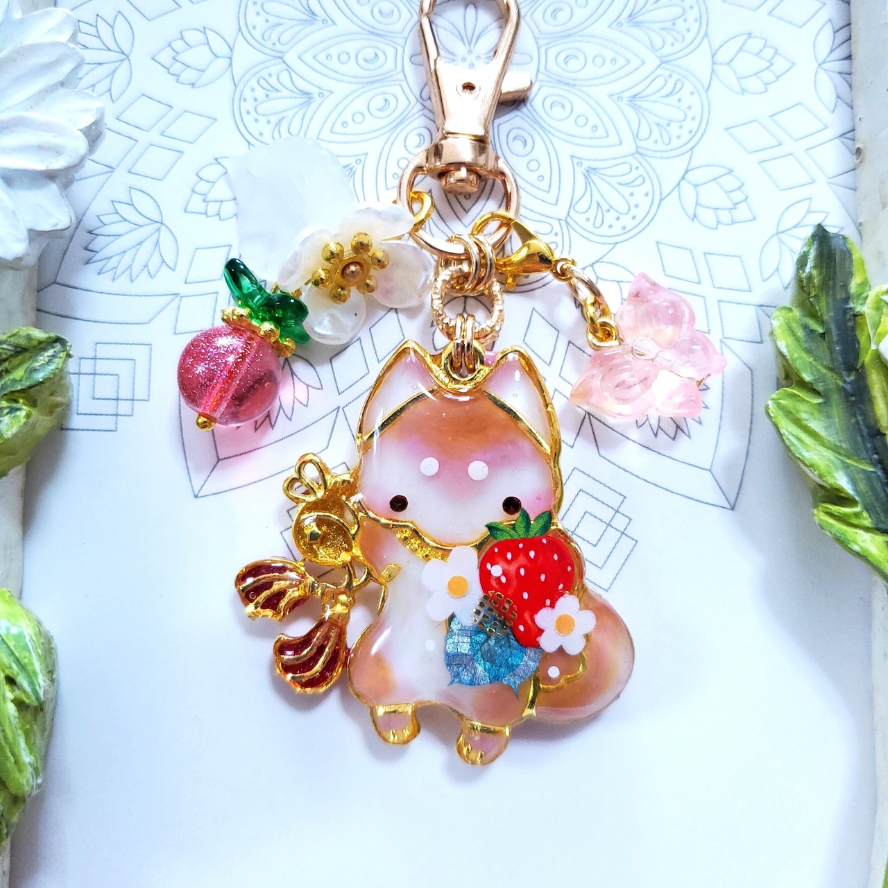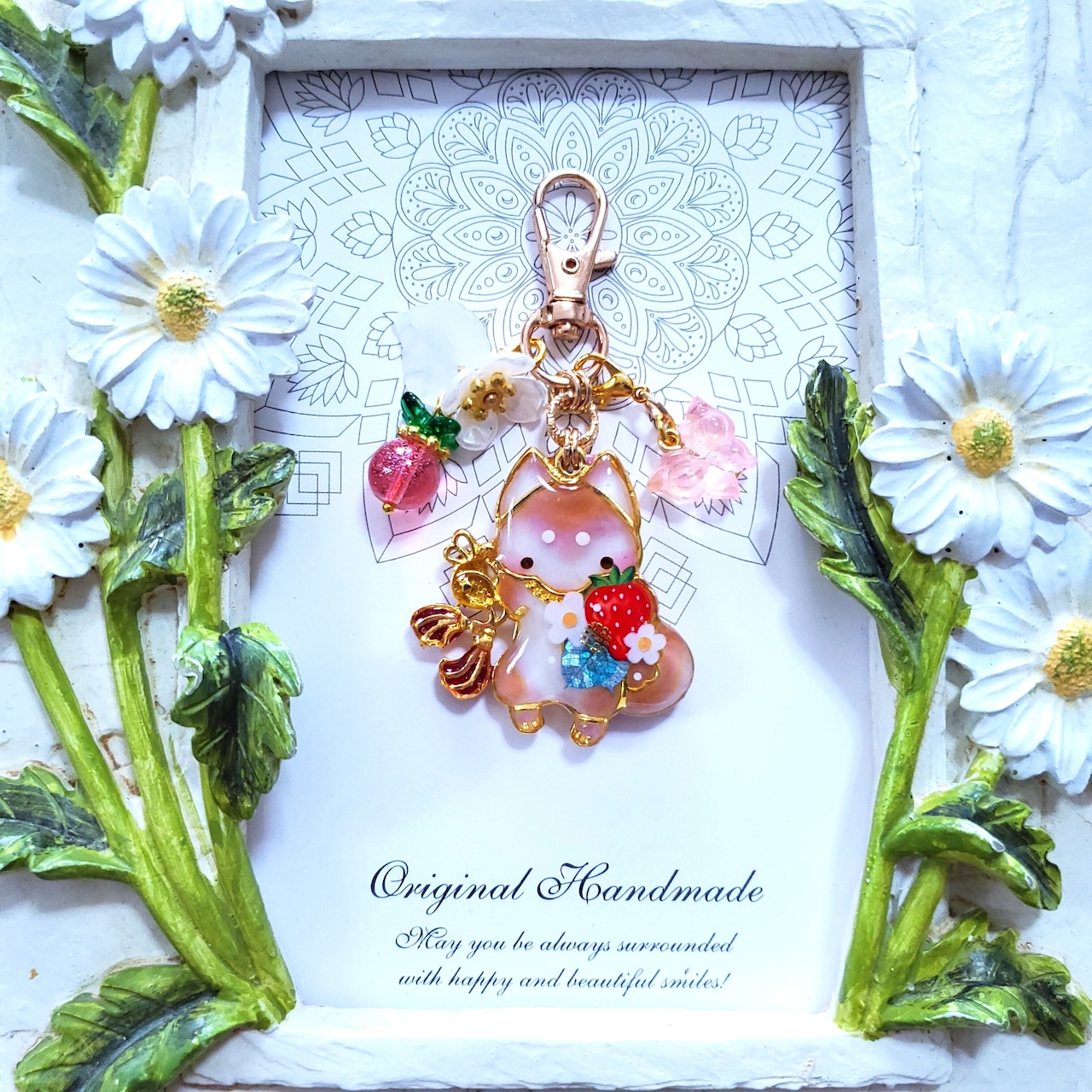 くるりんしっぽの招き狛犬 ✦ いちごミルクティ ✦ バッグチャーム