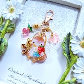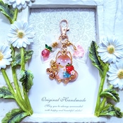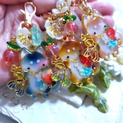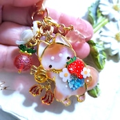 ガラスビーズのいちごや蝶のビーズチャーム付き。