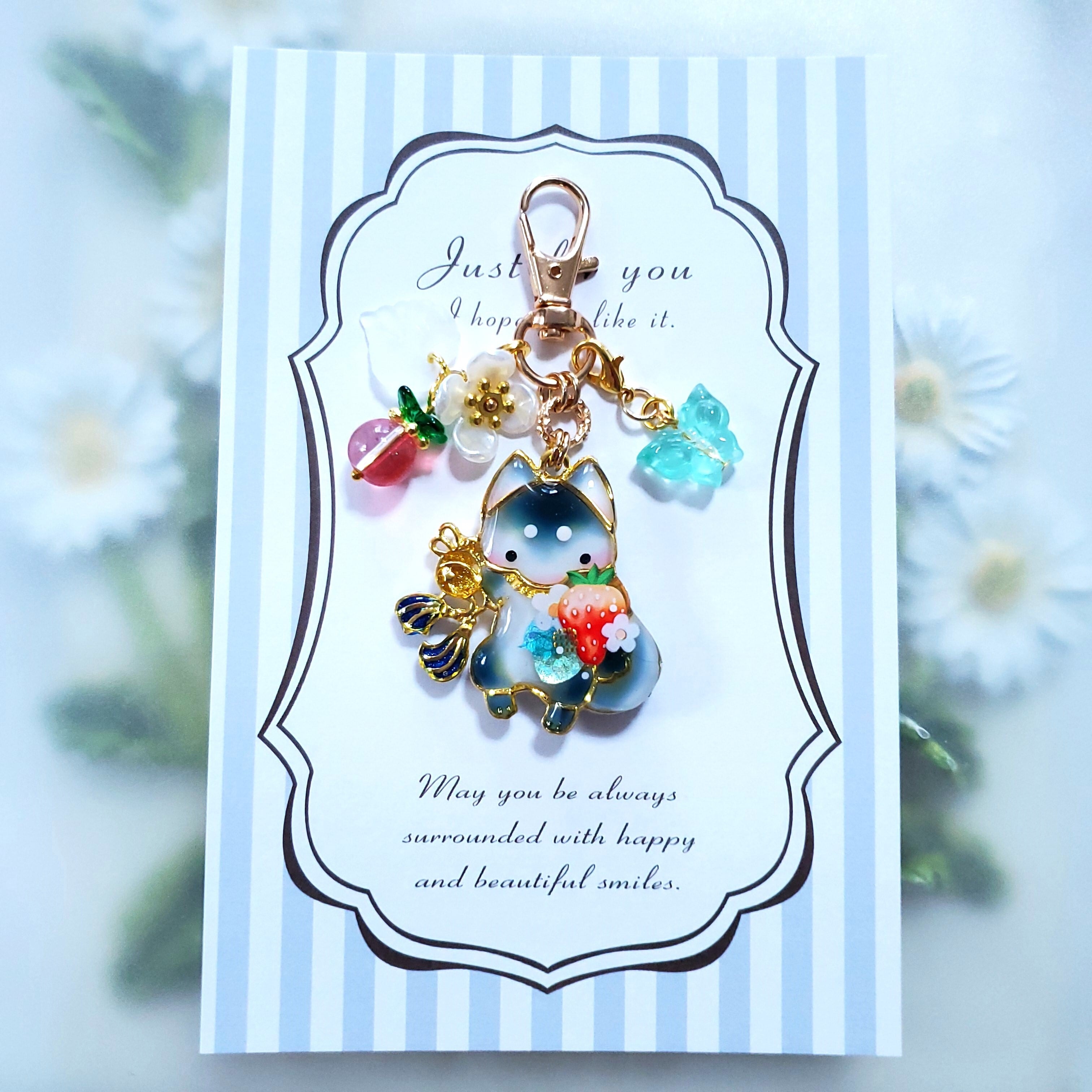 くるりんしっぽの招き狛犬 ✦ ロイヤルブルー ✦ キーホルダー