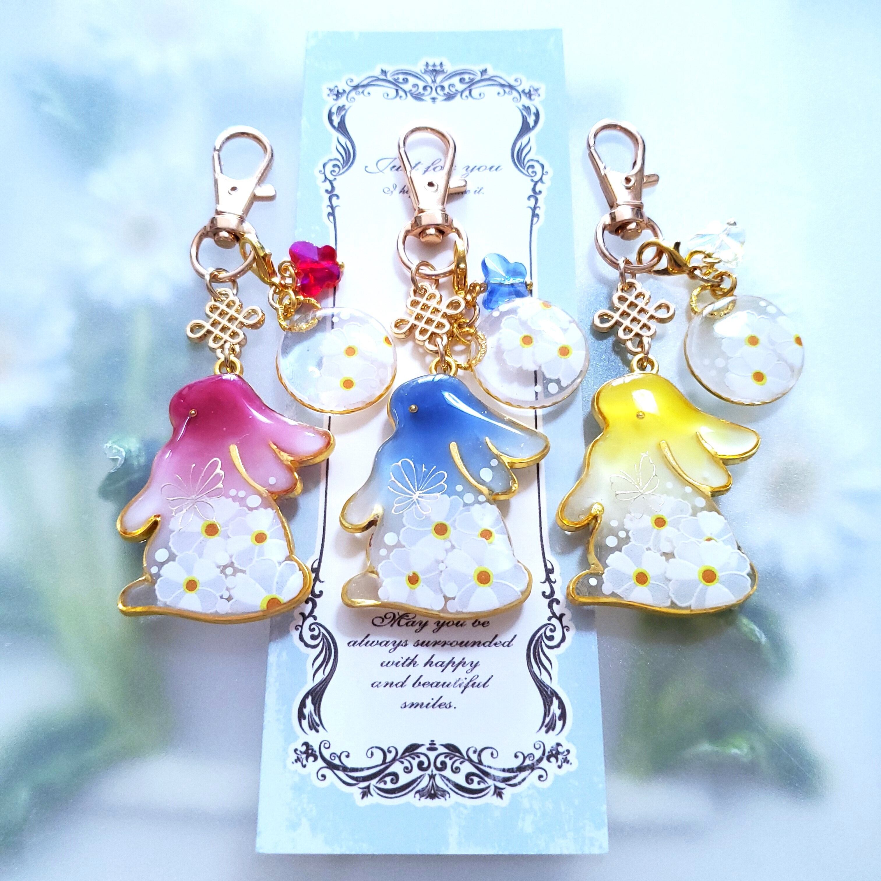 おそろいのお花模様チャームには