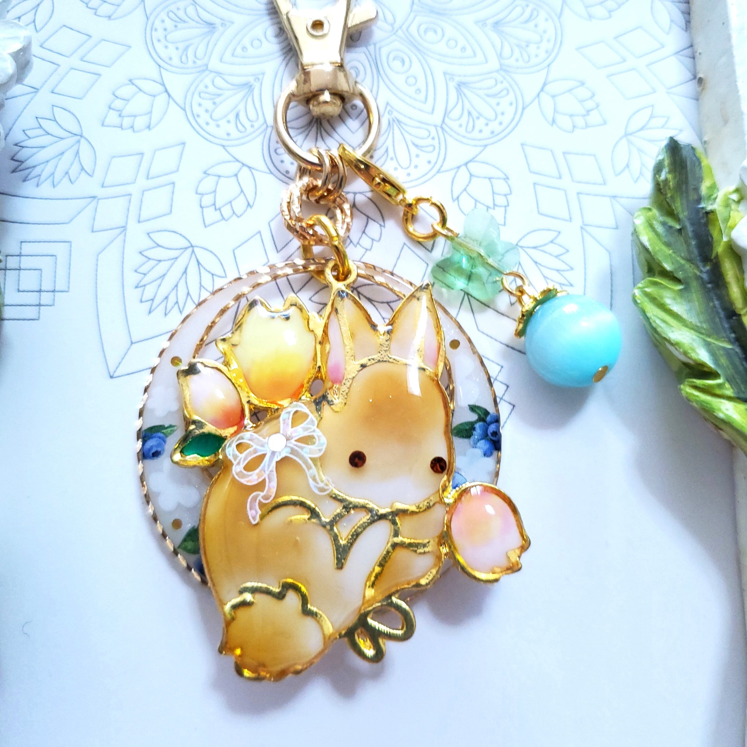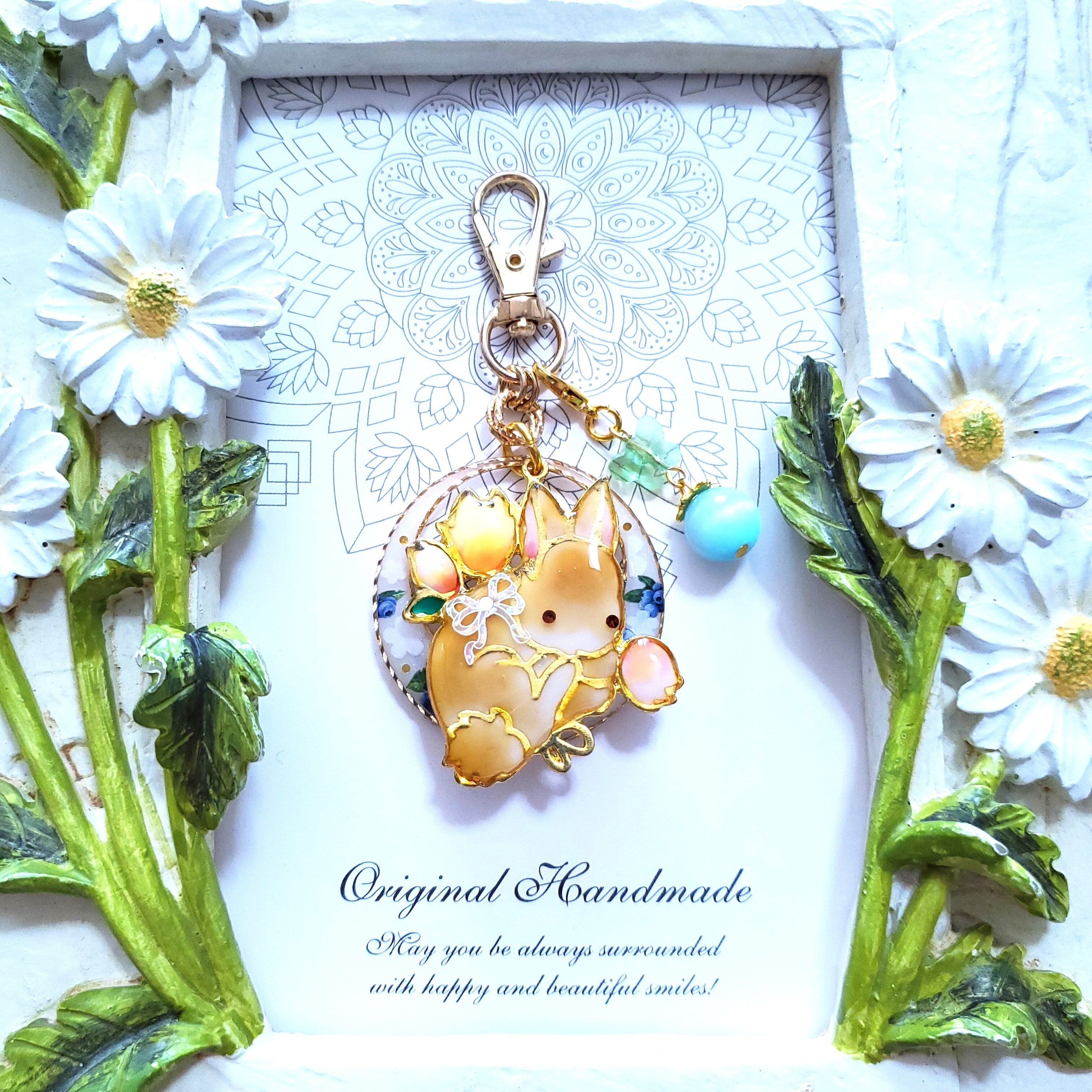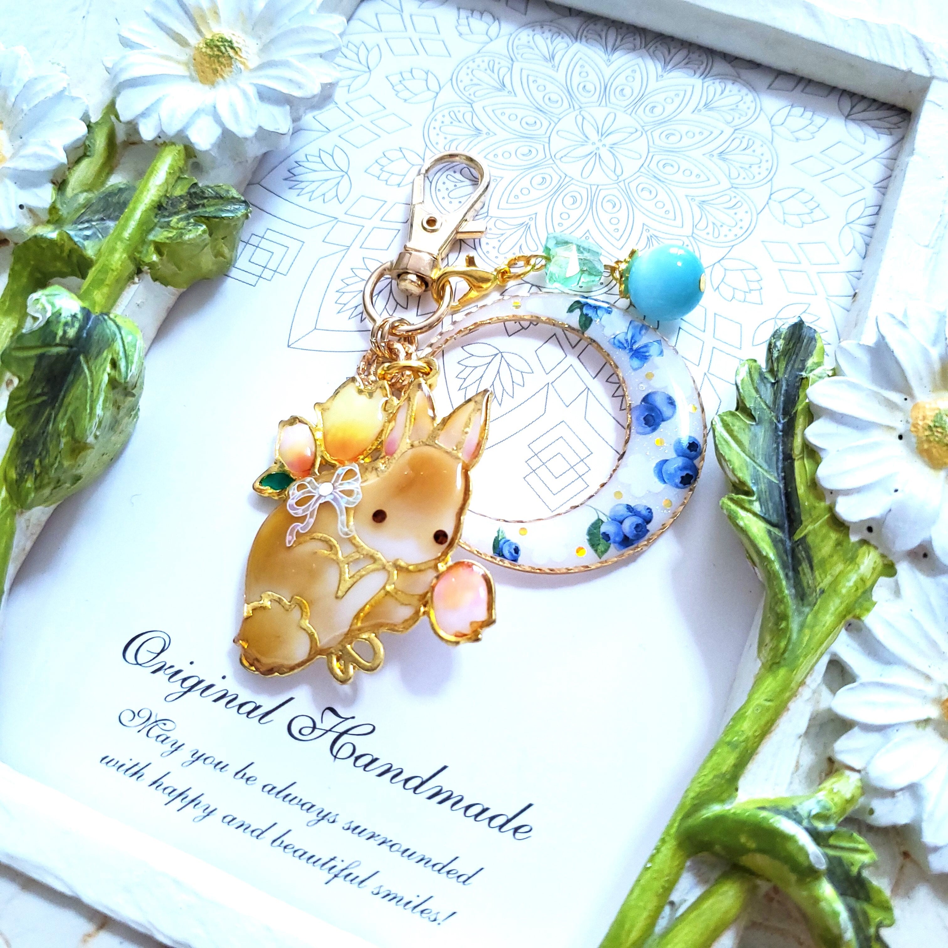 ゆらりんうさぎ ✦ ハニーブラウン&ブルーベリー ✦ キーホルダー