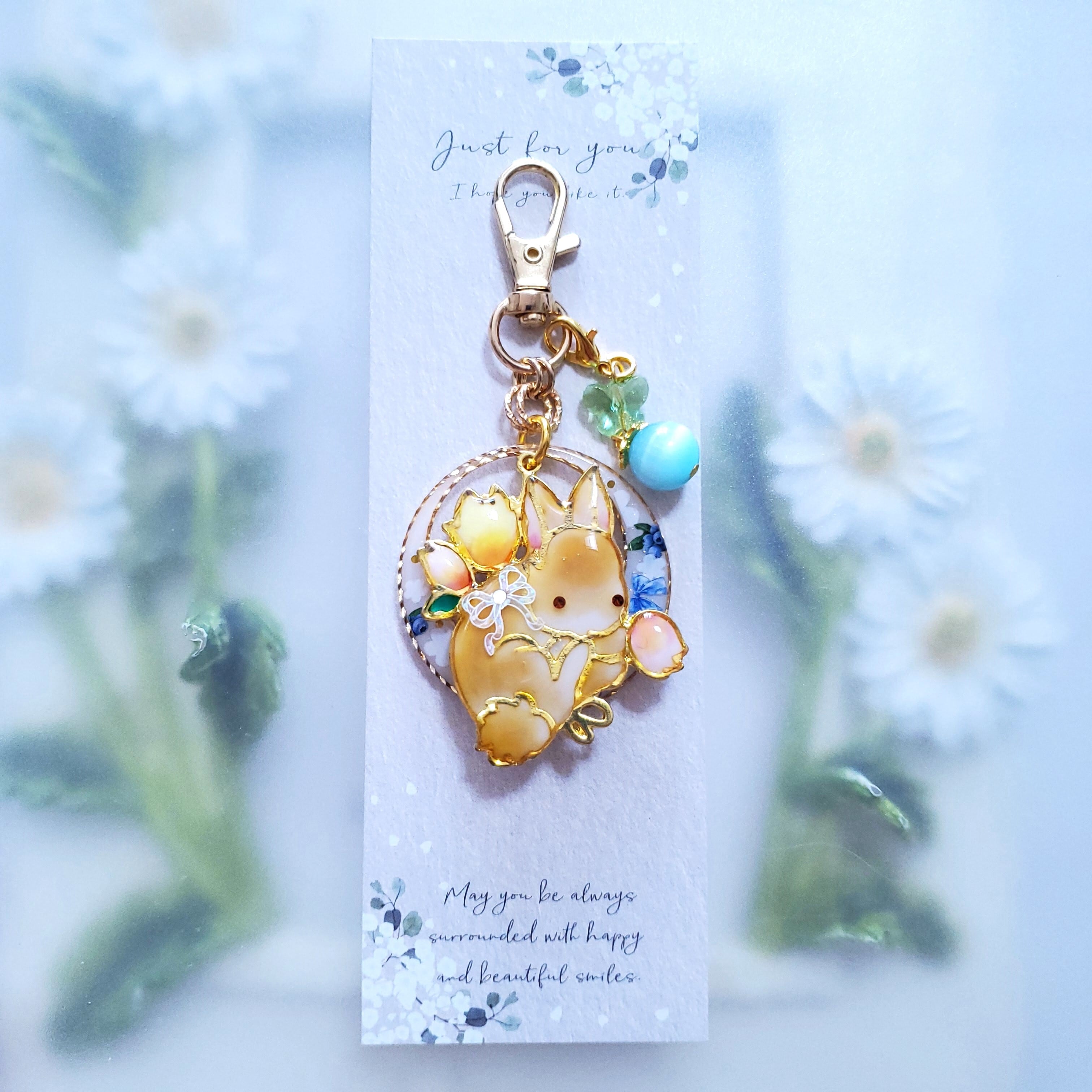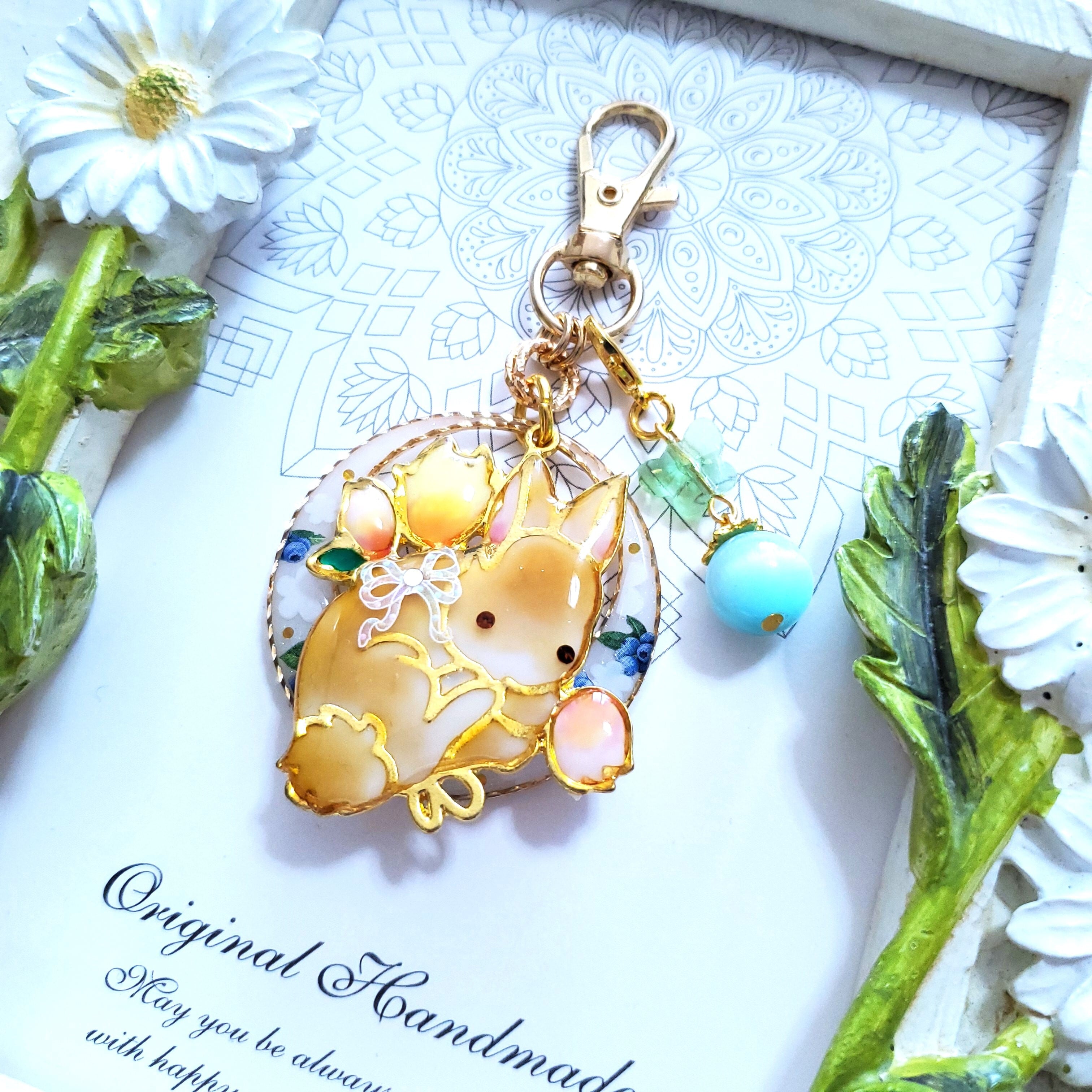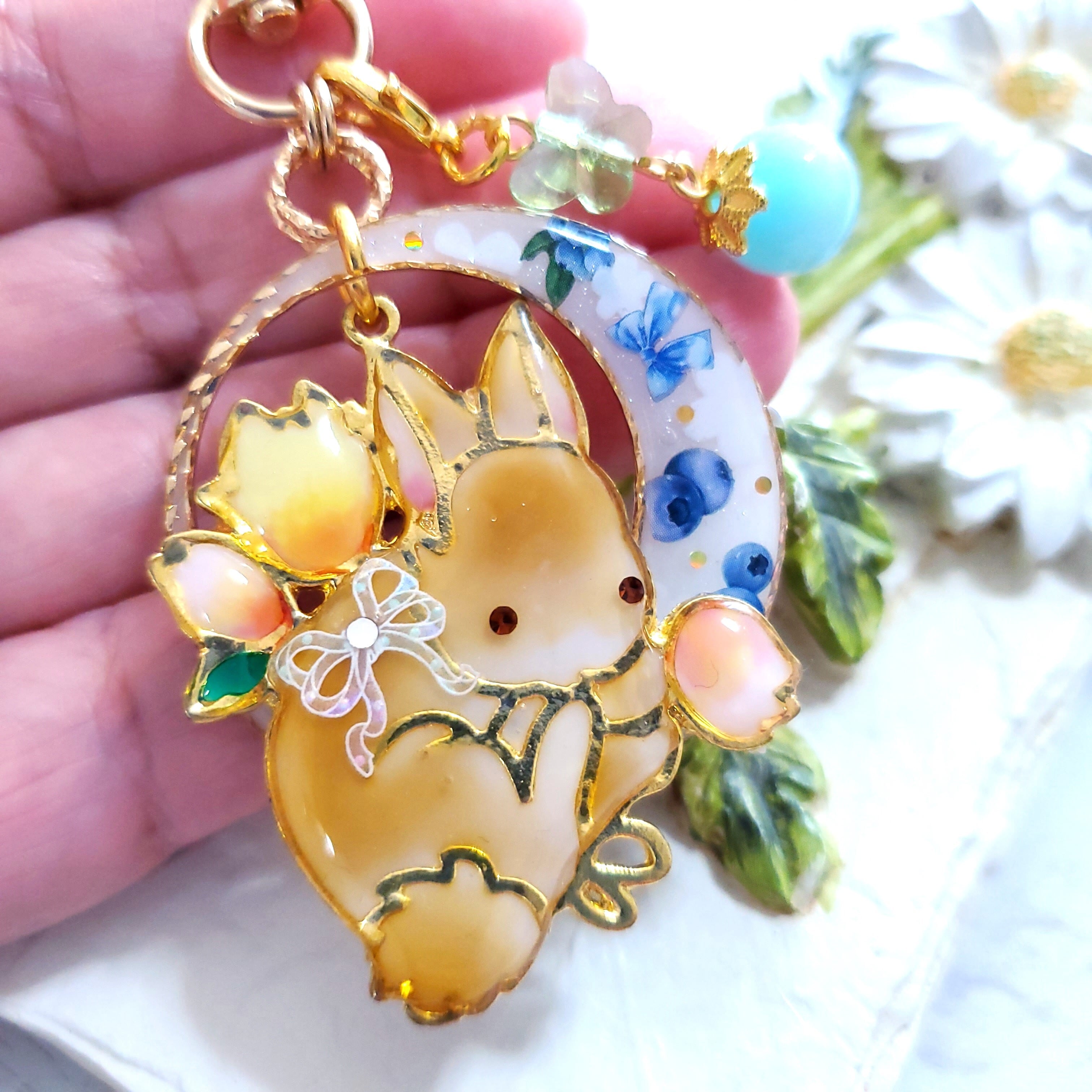 ゆらりんうさぎ ✦ ハニーブラウン&ブルーベリー ✦ キーホルダー