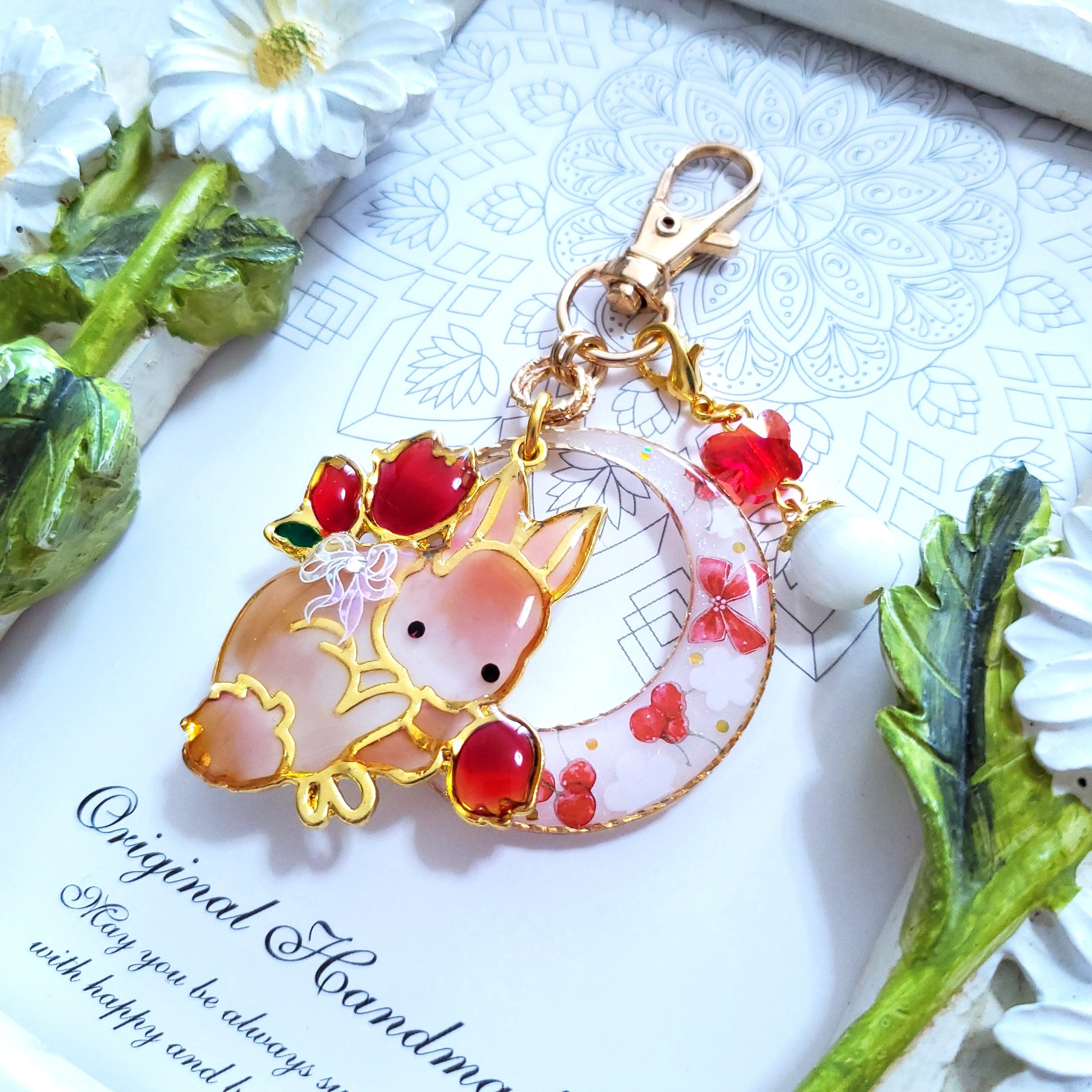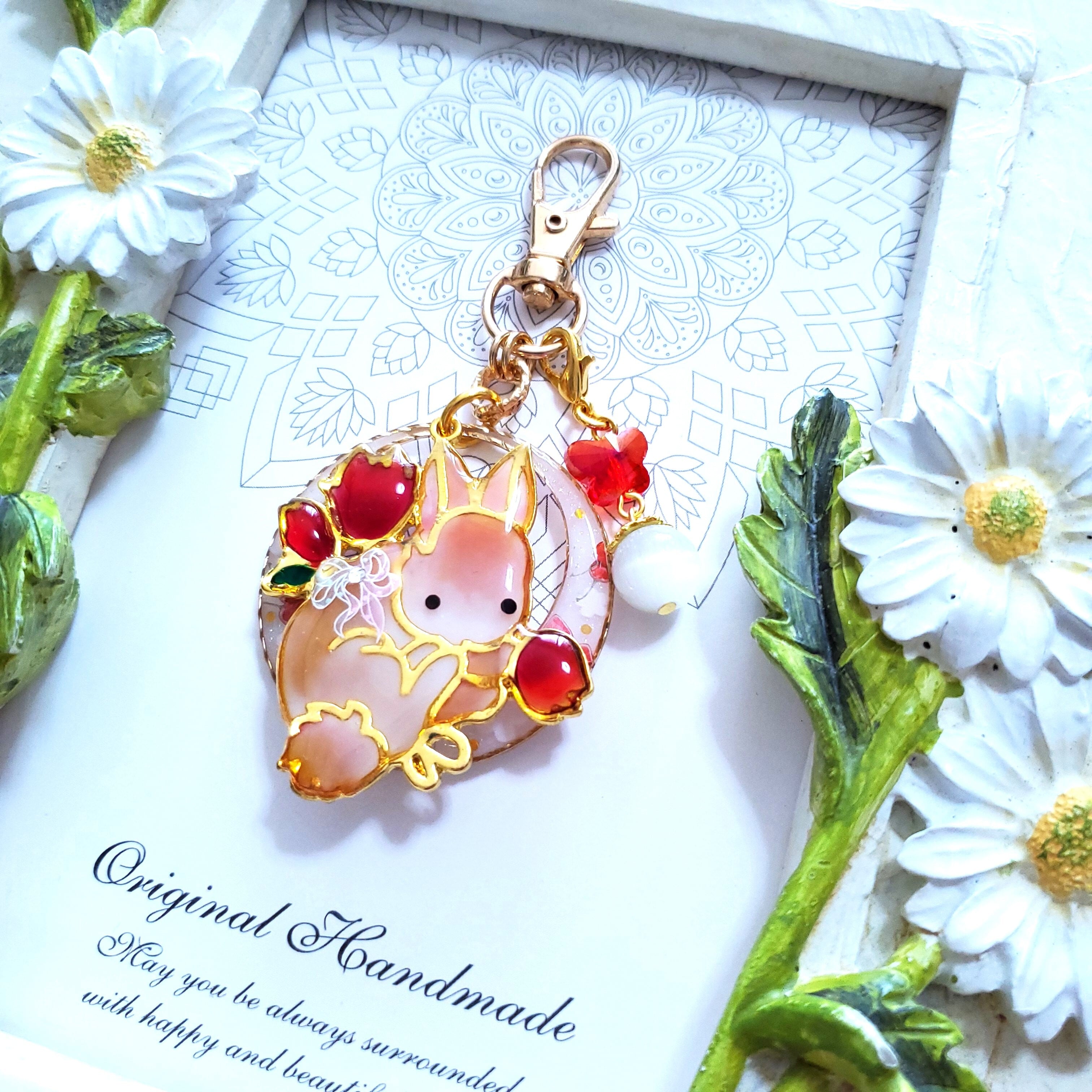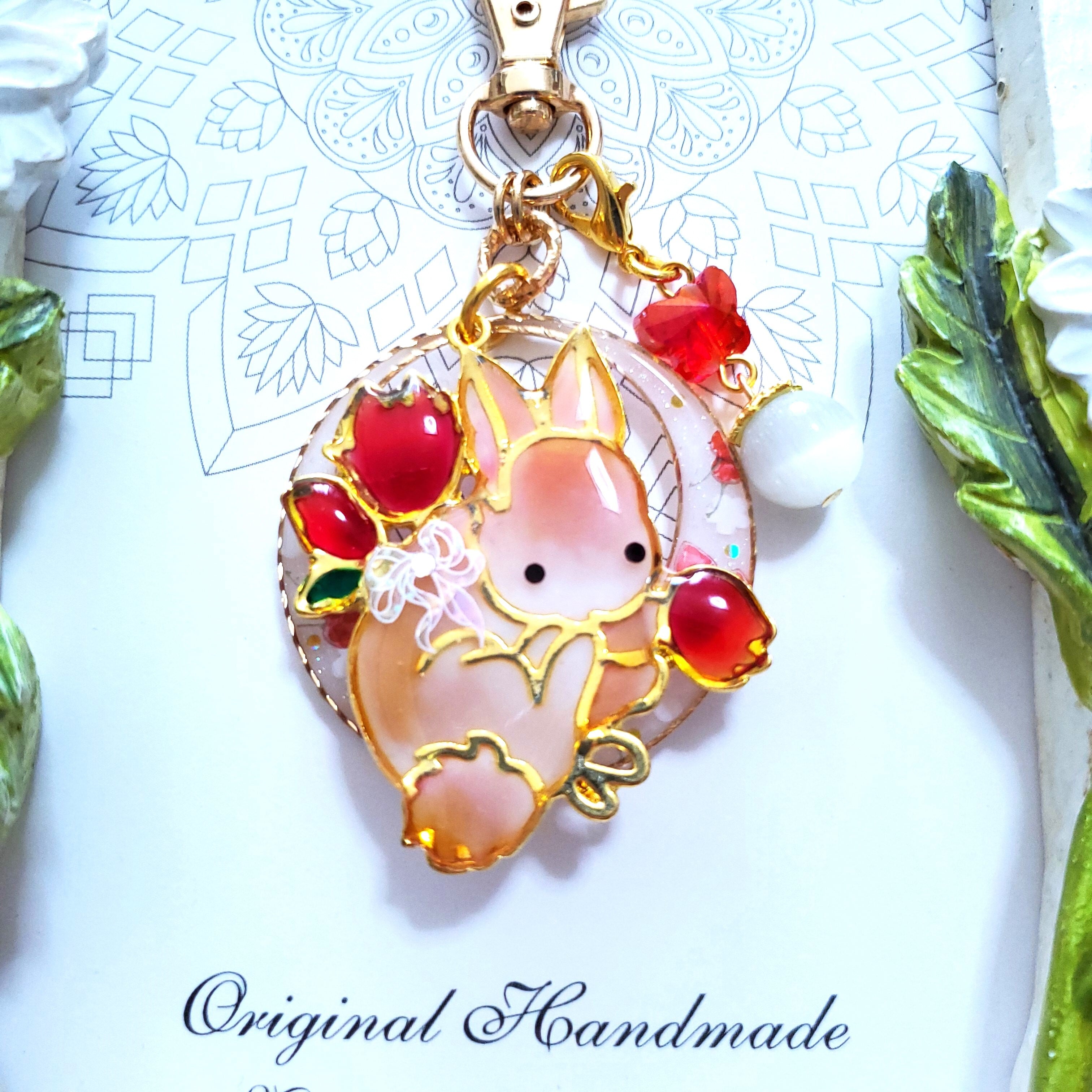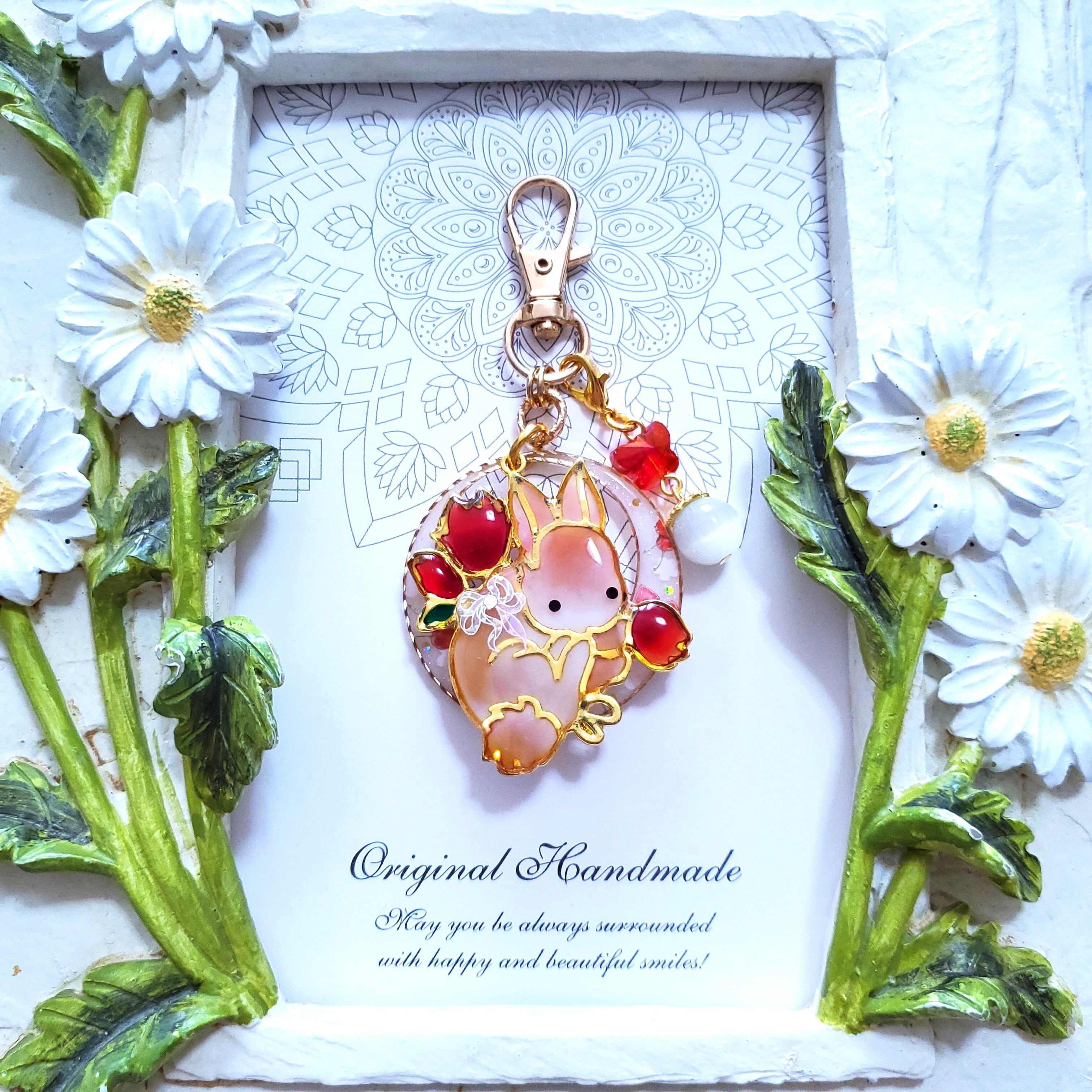 ゆらりんうさぎ ✦ ピンクブラウン&チェリー ✦ キーホルダー