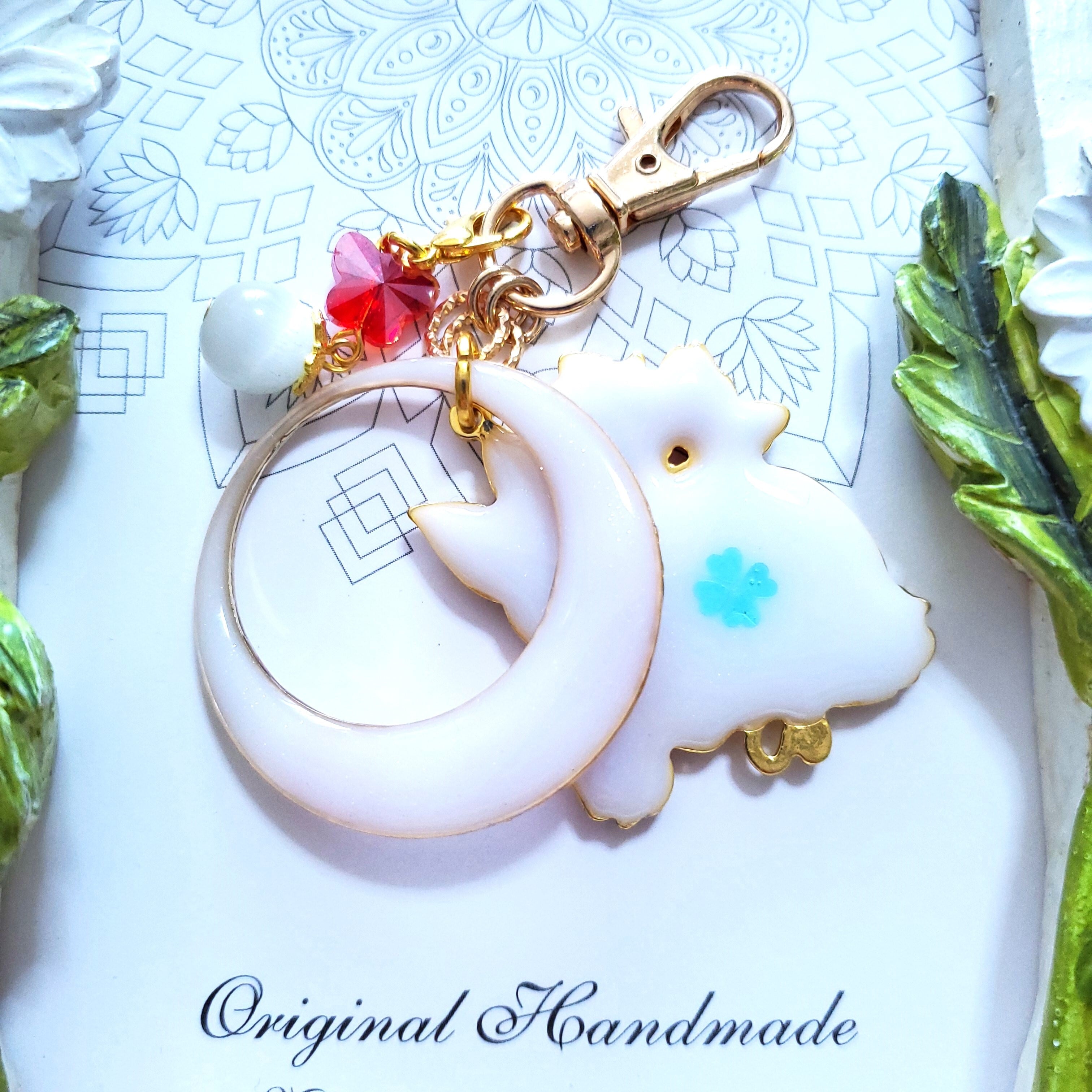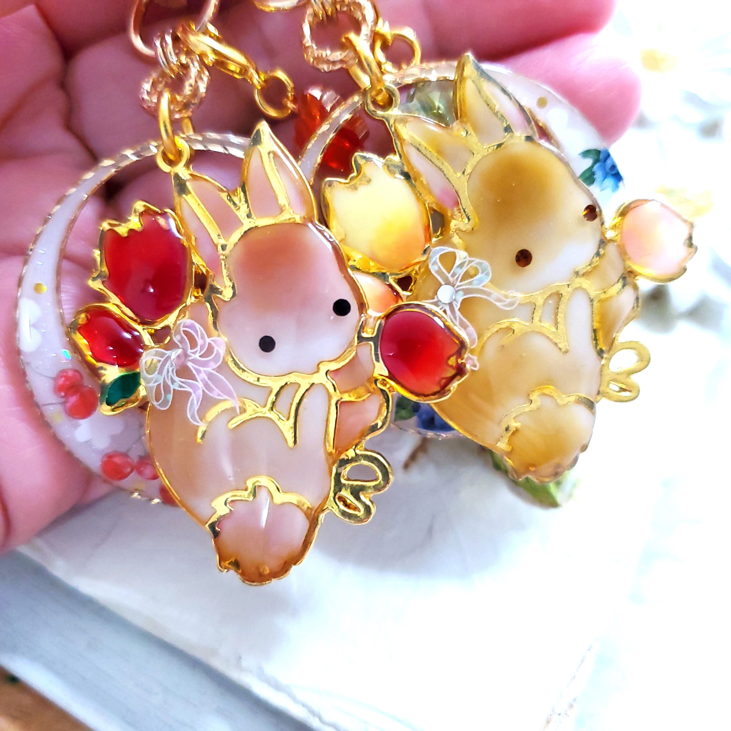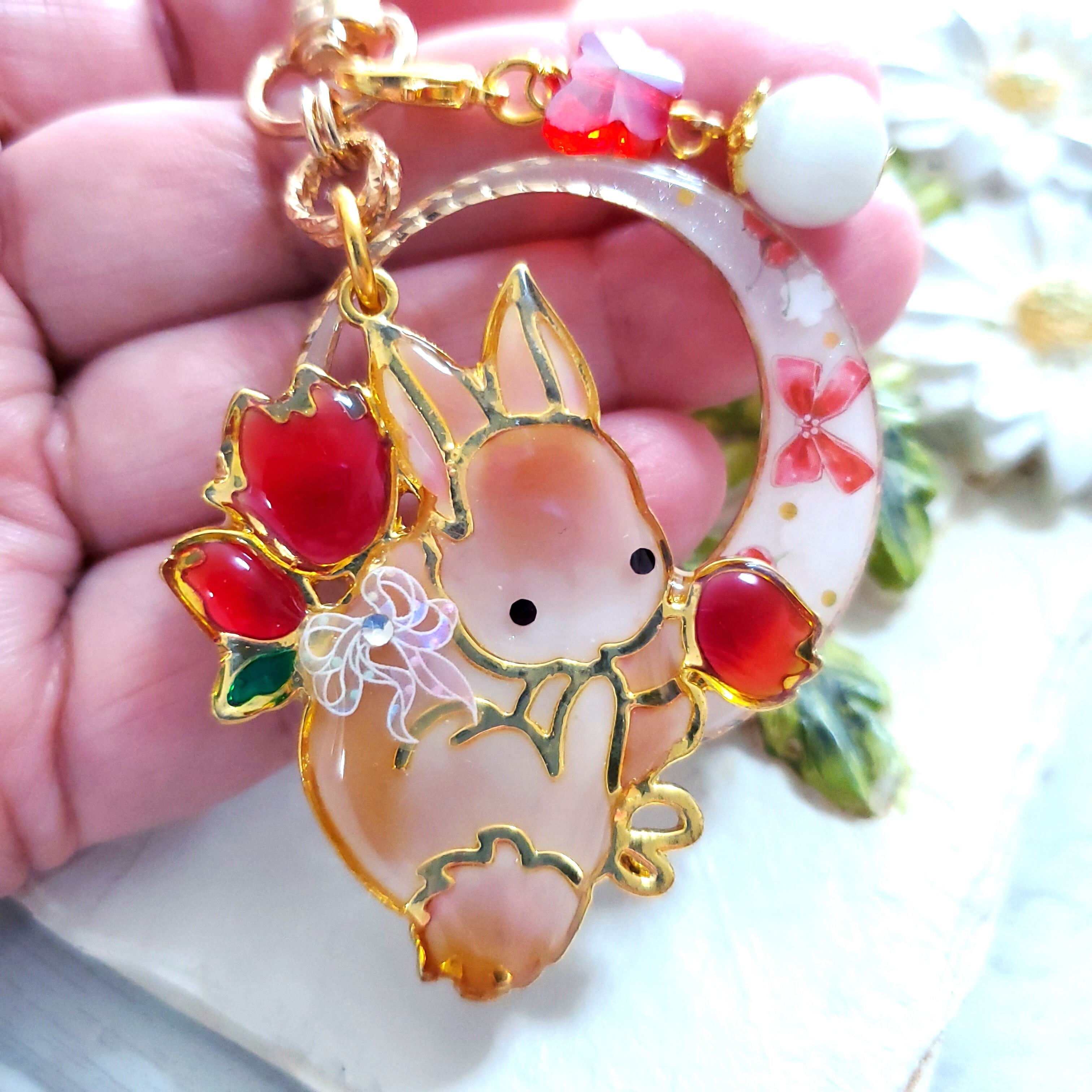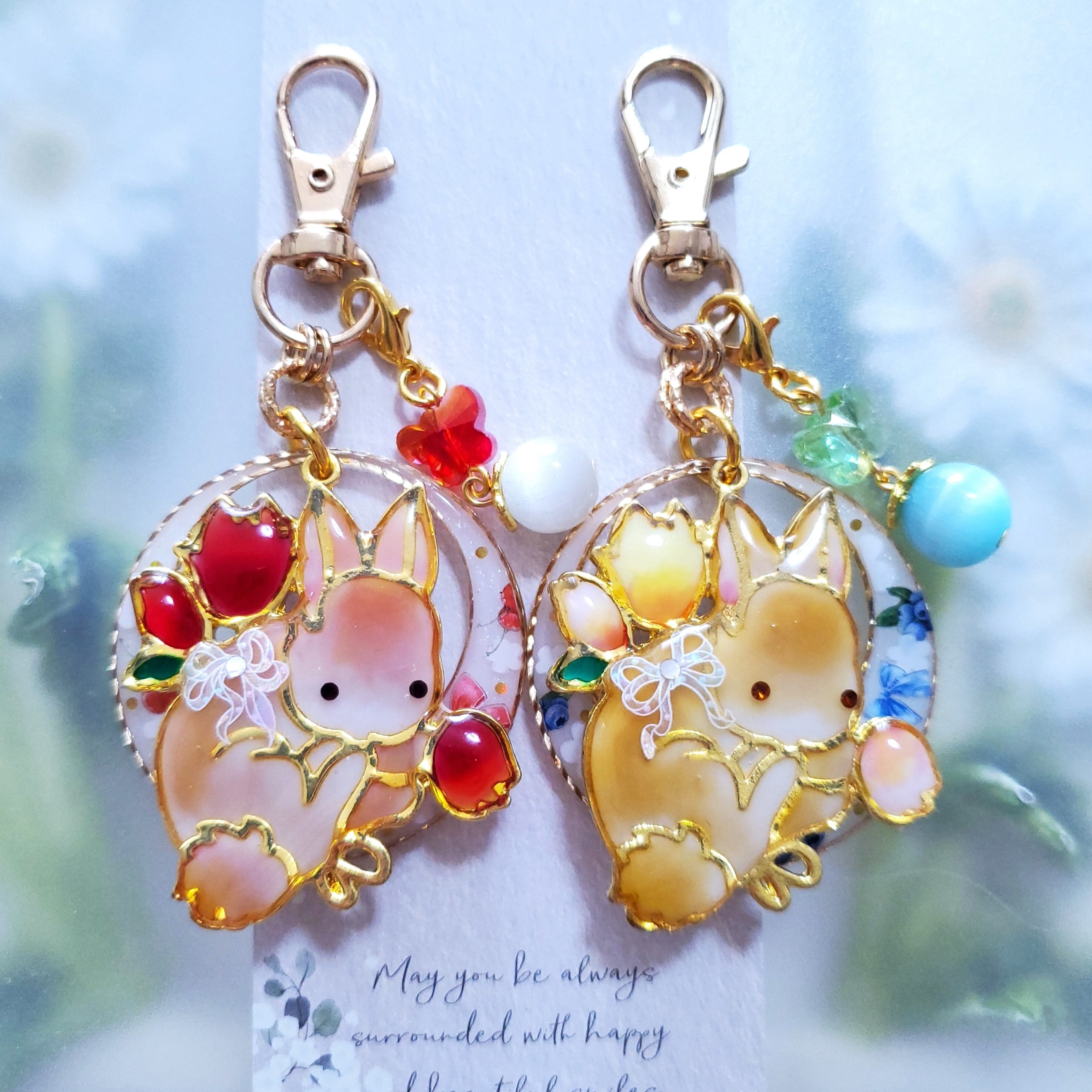 ゆらりんうさぎ ✦ ピンクブラウン&チェリー ✦ キーホルダー