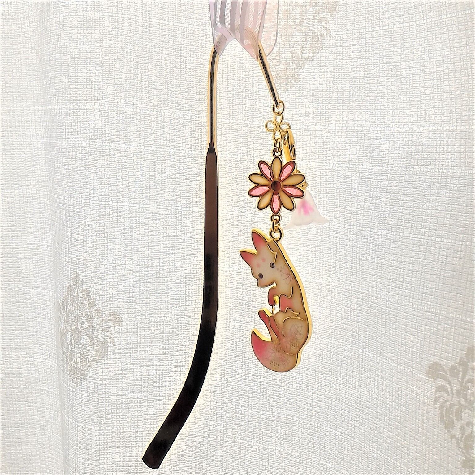 華狛狐ブックマーカー ✦ 桃花 ✦ チャーム付き