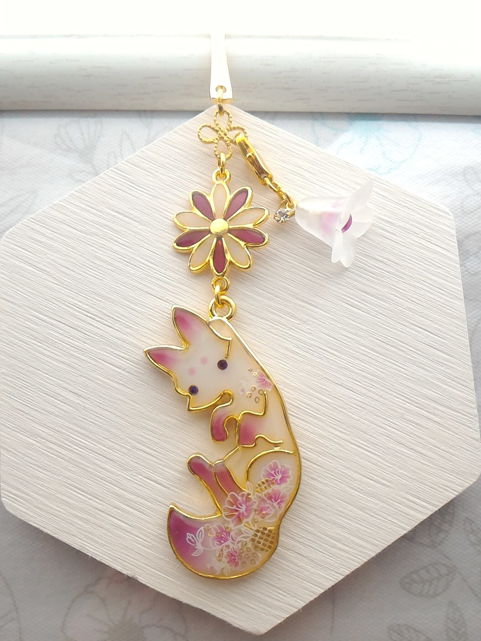 華狐の色に合わせたオリジナルカラーのお花チャームをお付けしました。
