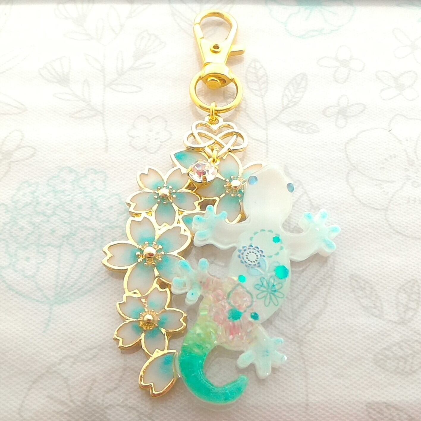 sold out ✦ 桜とやもり ✦ ミントグリーン ✦ キーホルダー