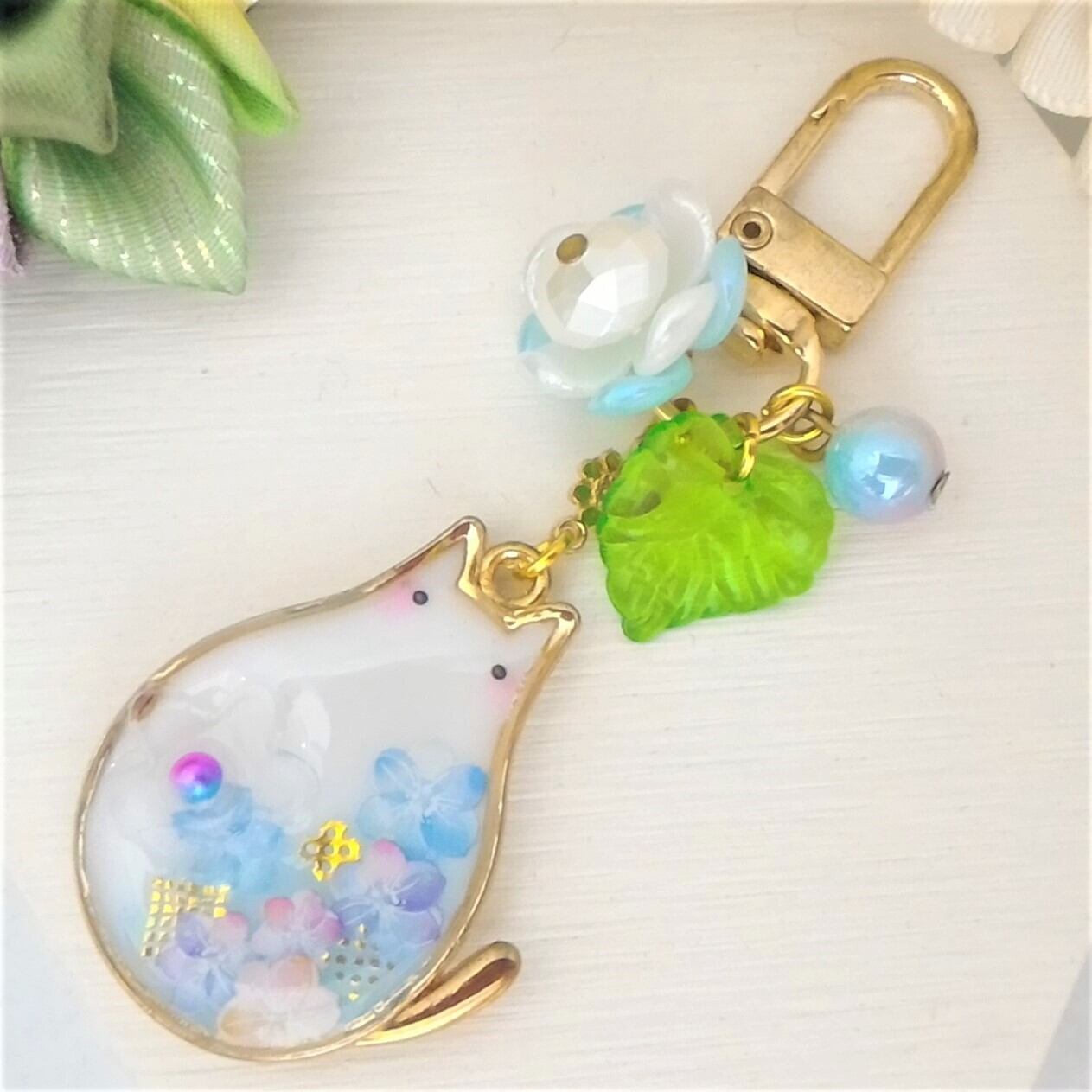sold out ✦ まんまるにゃんこ ✦ 水色フラワー ✦ キーホルダー