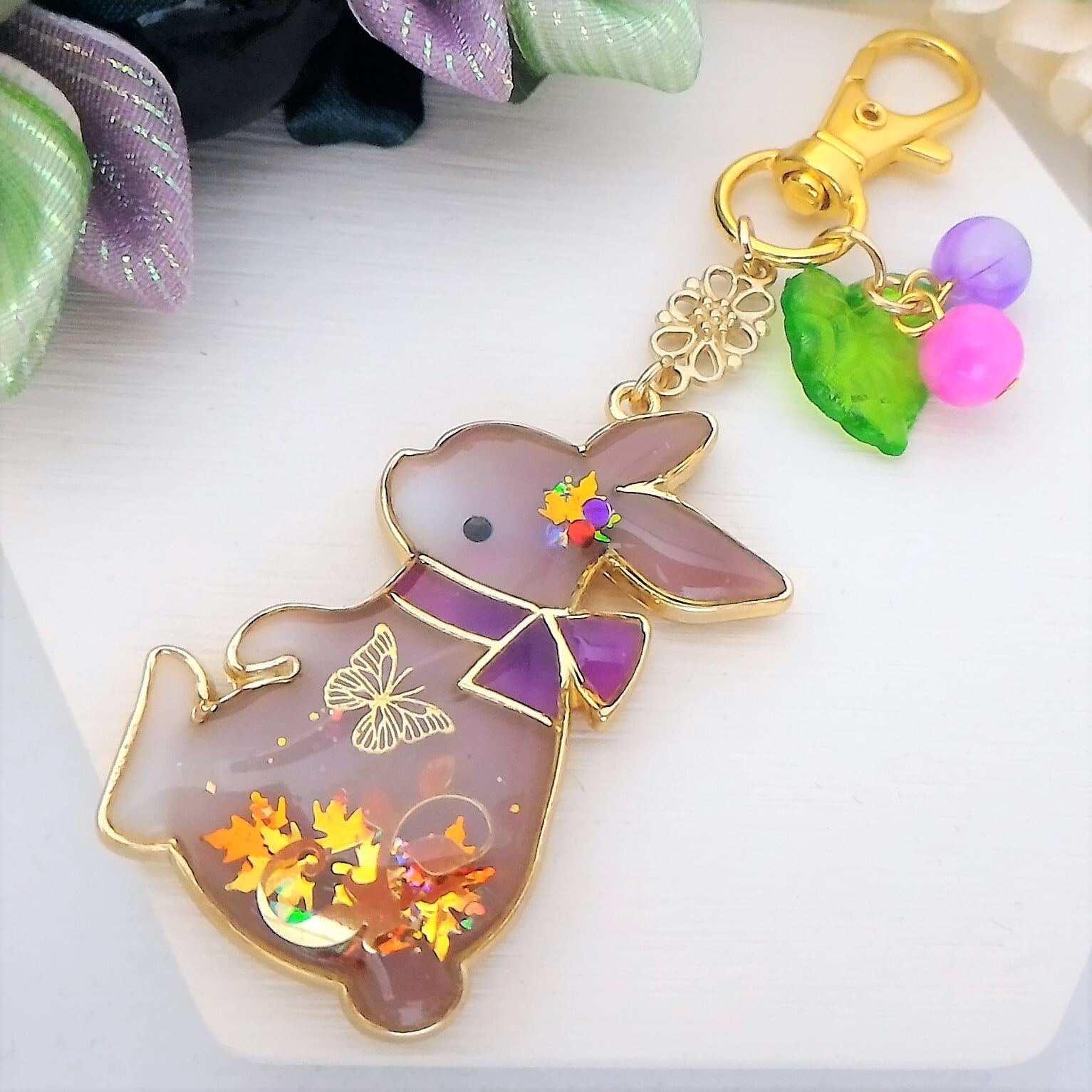 お散歩ウサギ ✦ 茶&紅葉 ✦ キーホルダー