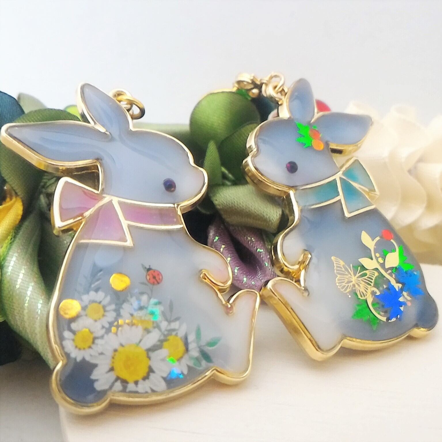 こちらは購入者様が決まっております┏○ペコ グレーのウサギちゃんのペア&ハートチャーム付きです♡