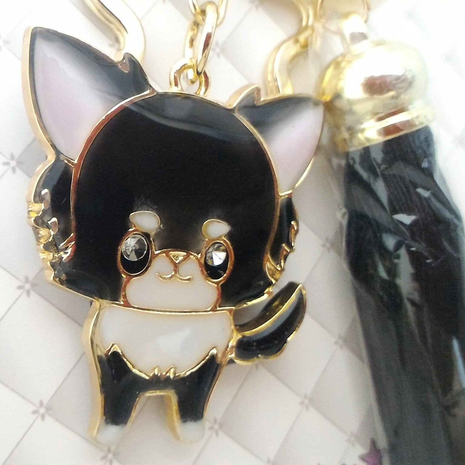 黒チワワ ✦ タッセル&パール ✦ キーホルダー