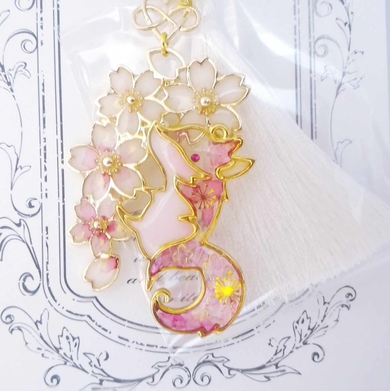 sold out ✦ 桜とすってんころりんキツネ ✦ ピンク桜 ✦ バッグチャーム