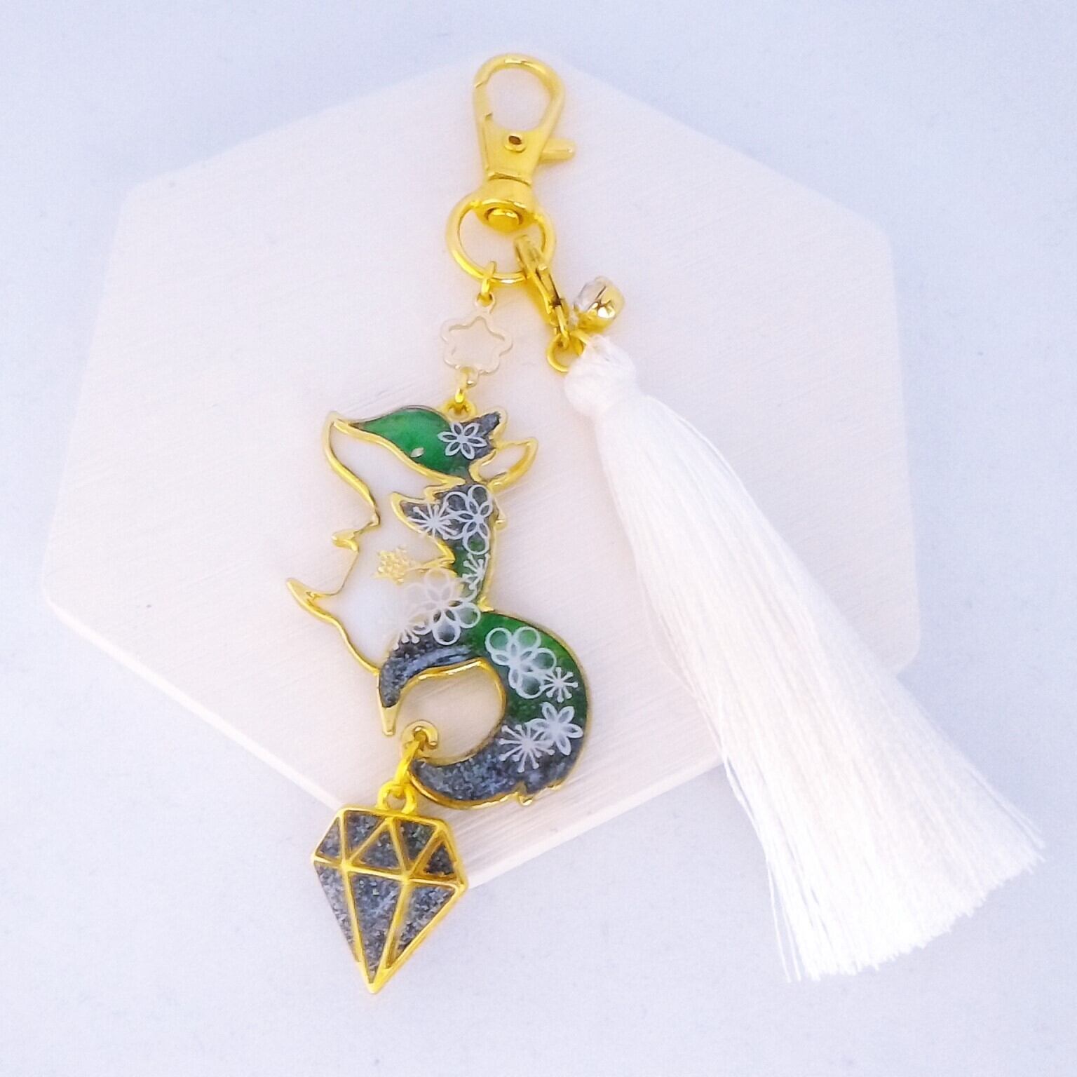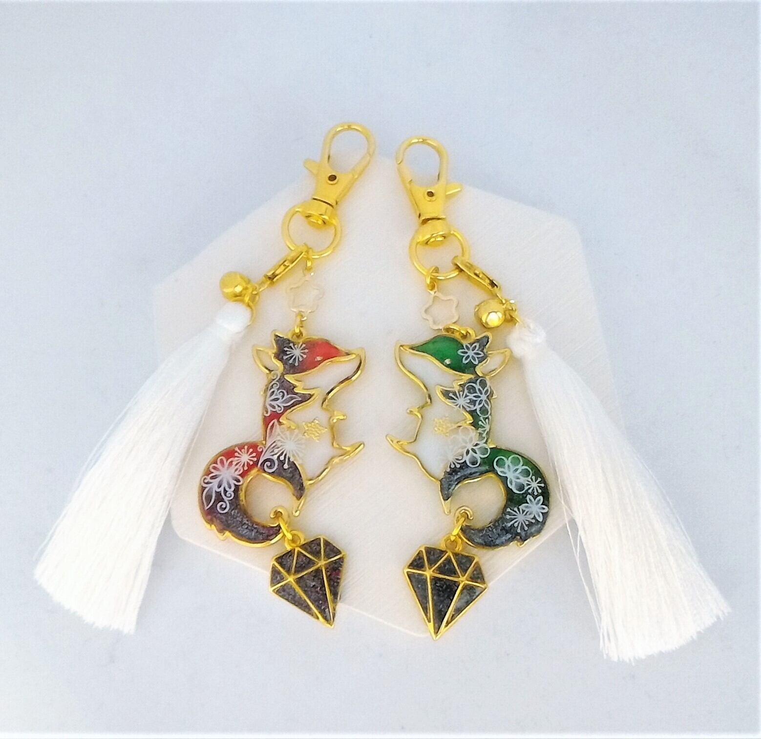 すってんころりんキツネ ✦ XmasParty・緑 ✦ キーホルダー