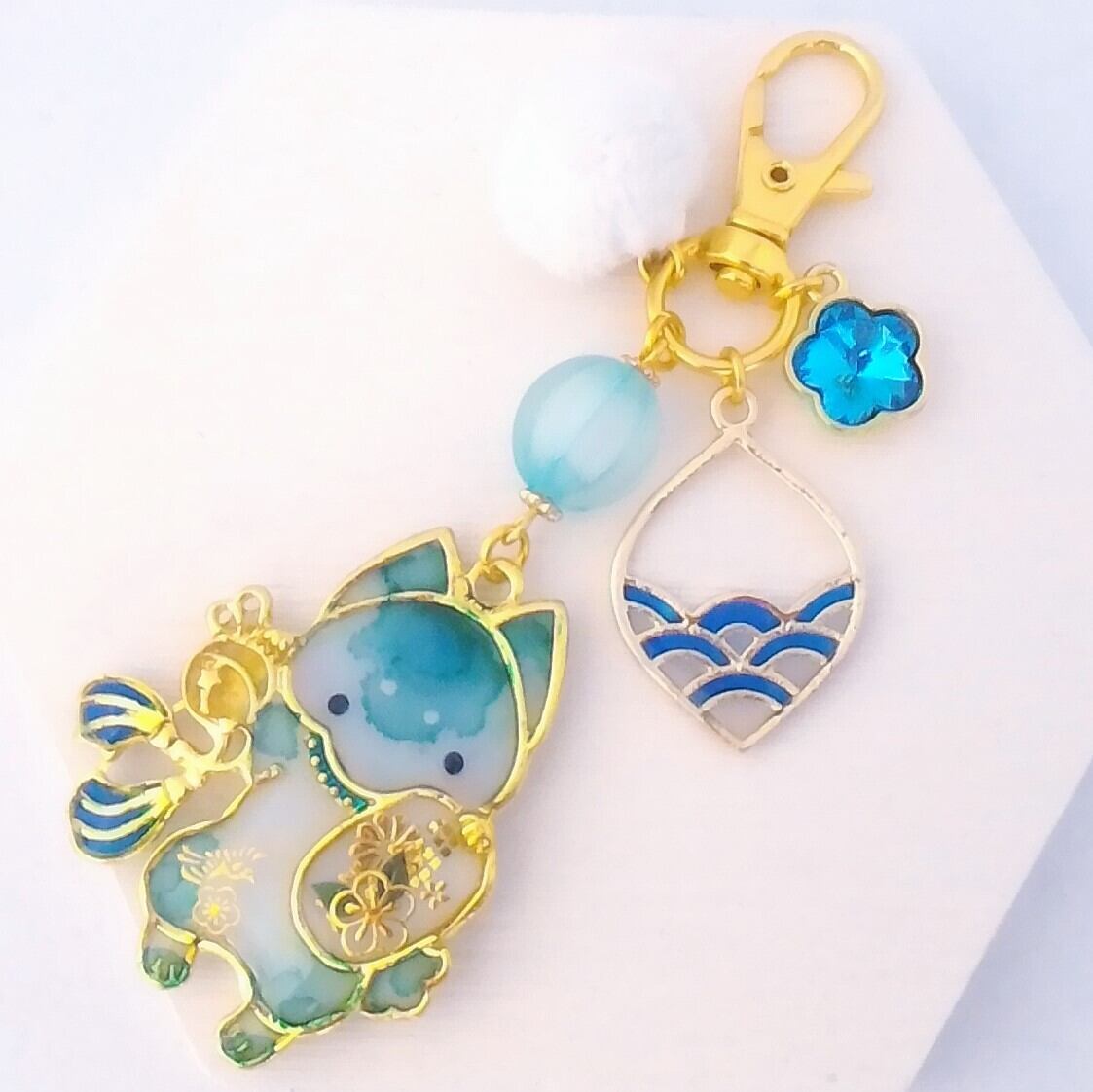 チャームは狛犬のお色似合わせて青海波チャームと