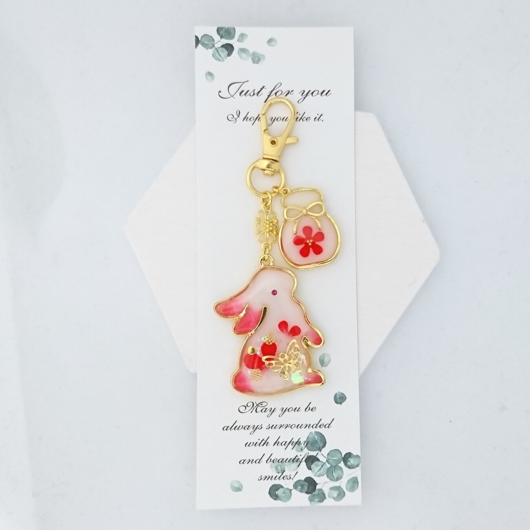 華うさぎ ✦ 紅白花 ✦ キーホルダー