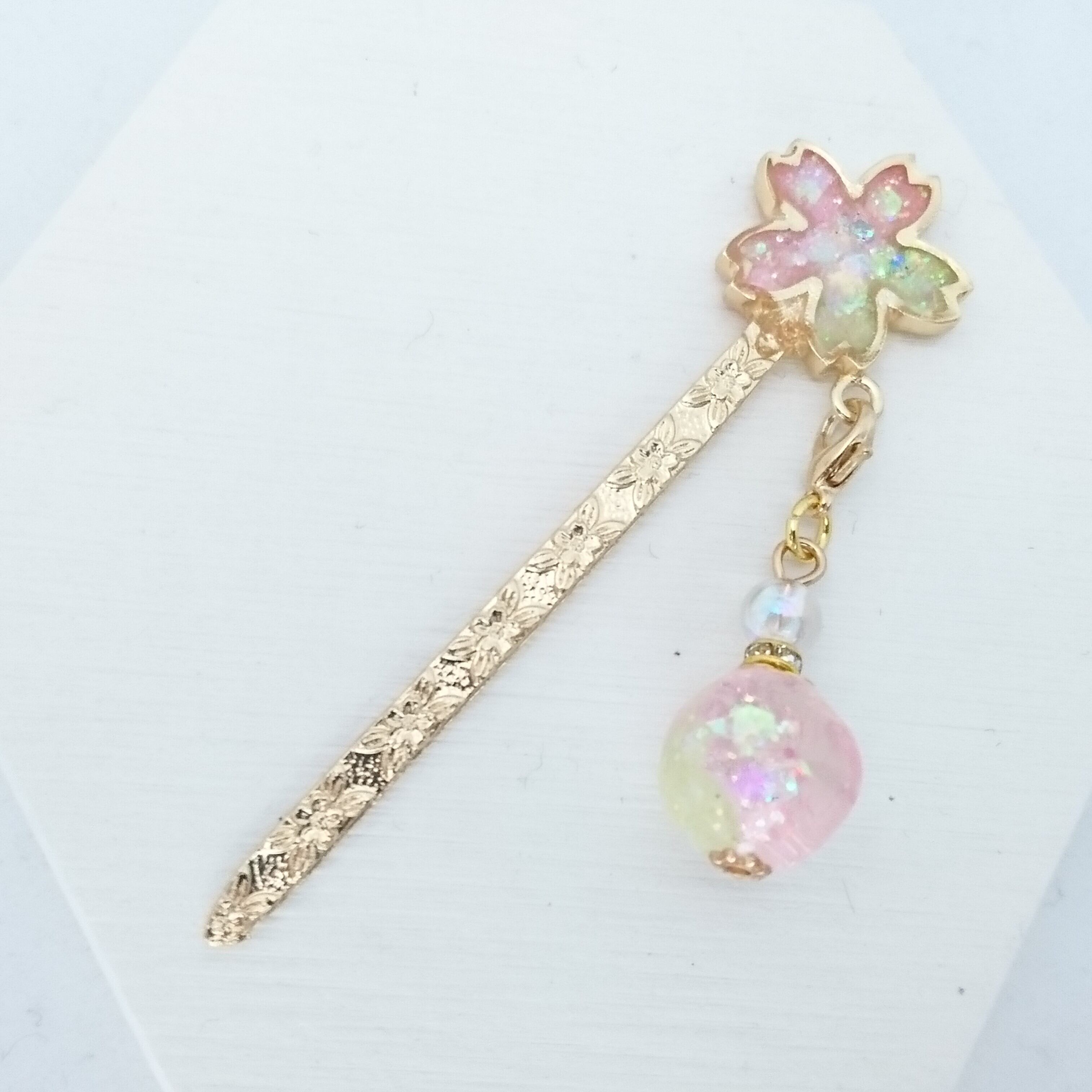 キラキラの中に 桜の花が見え隠れする香水チャームです。