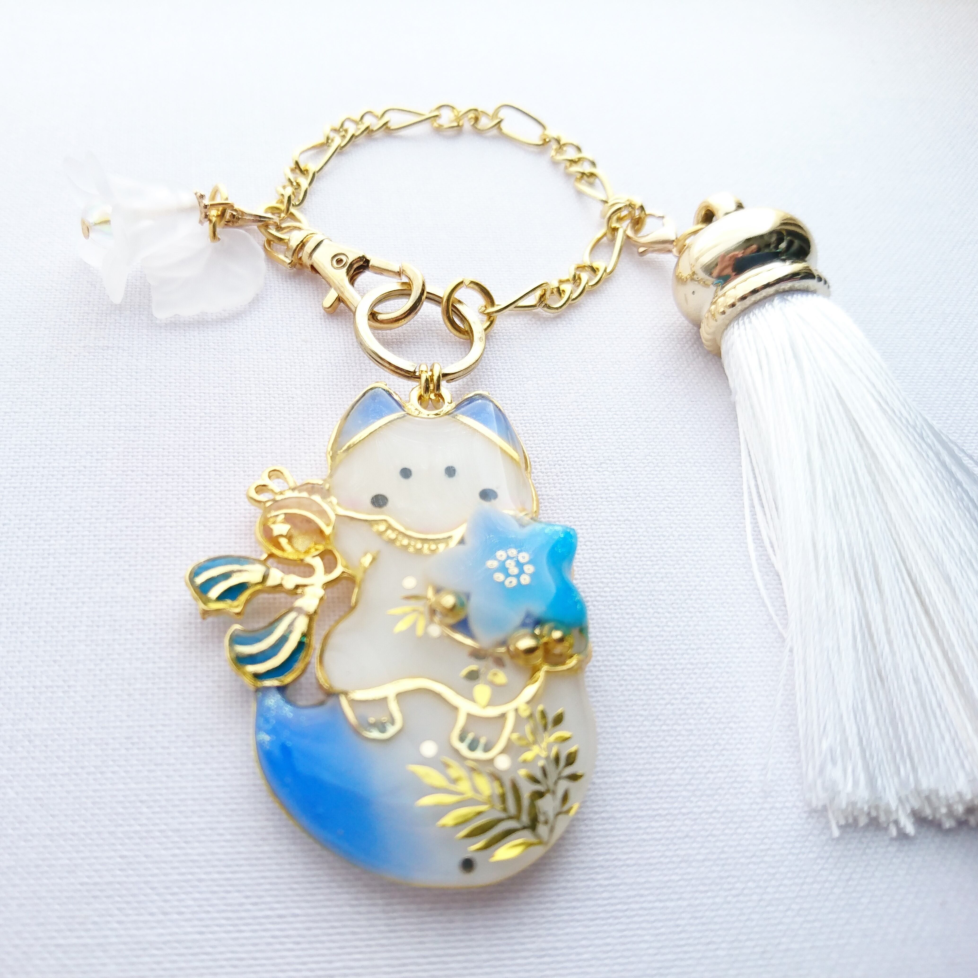 sold out ✦ ふんわりしっぽの招き狛狐 ✦ 青華 ✦ バッグチャーム