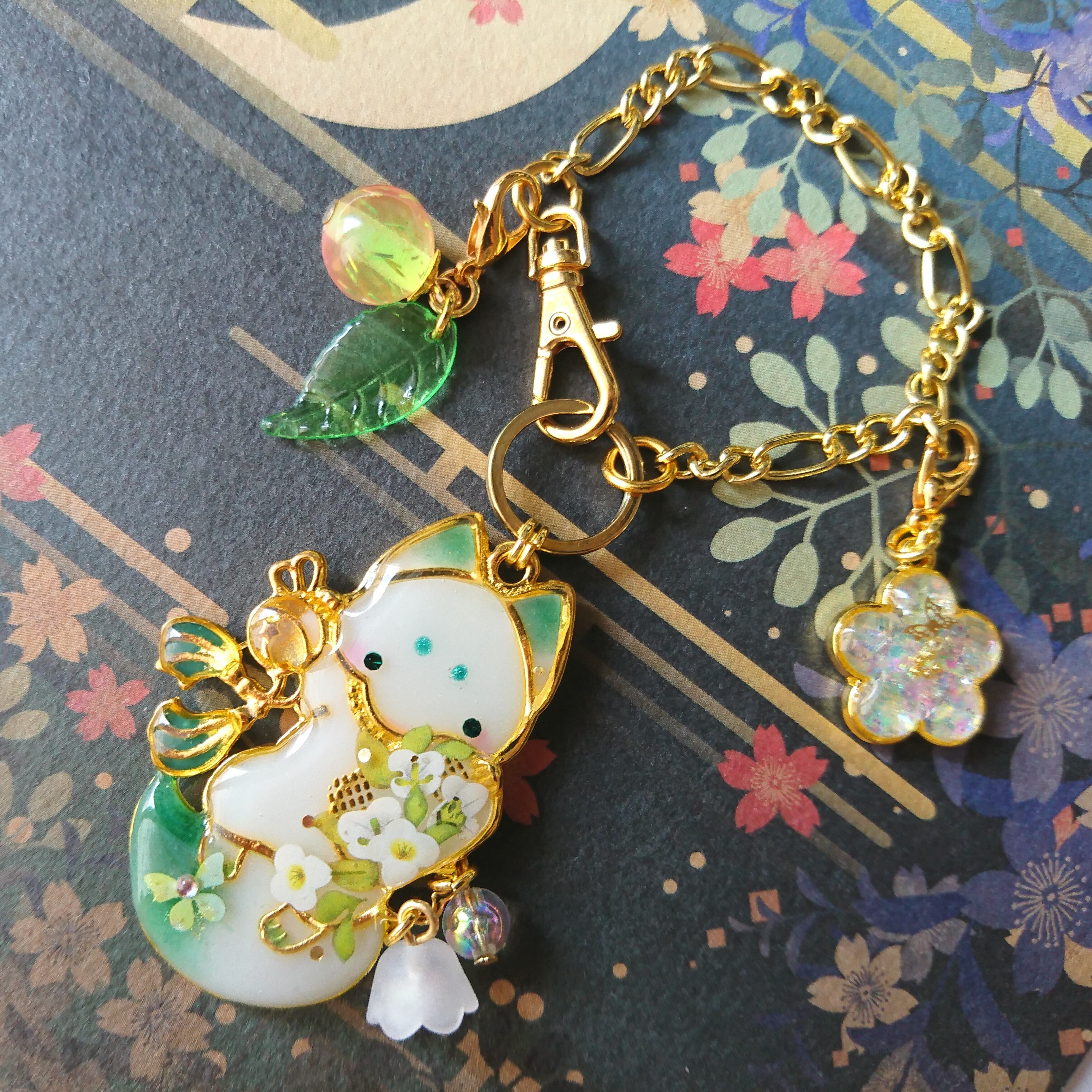 sold out ✦ ふんわりしっぽの招き狛狐 ✦ ユキヤナギ ✦ バッグチャーム