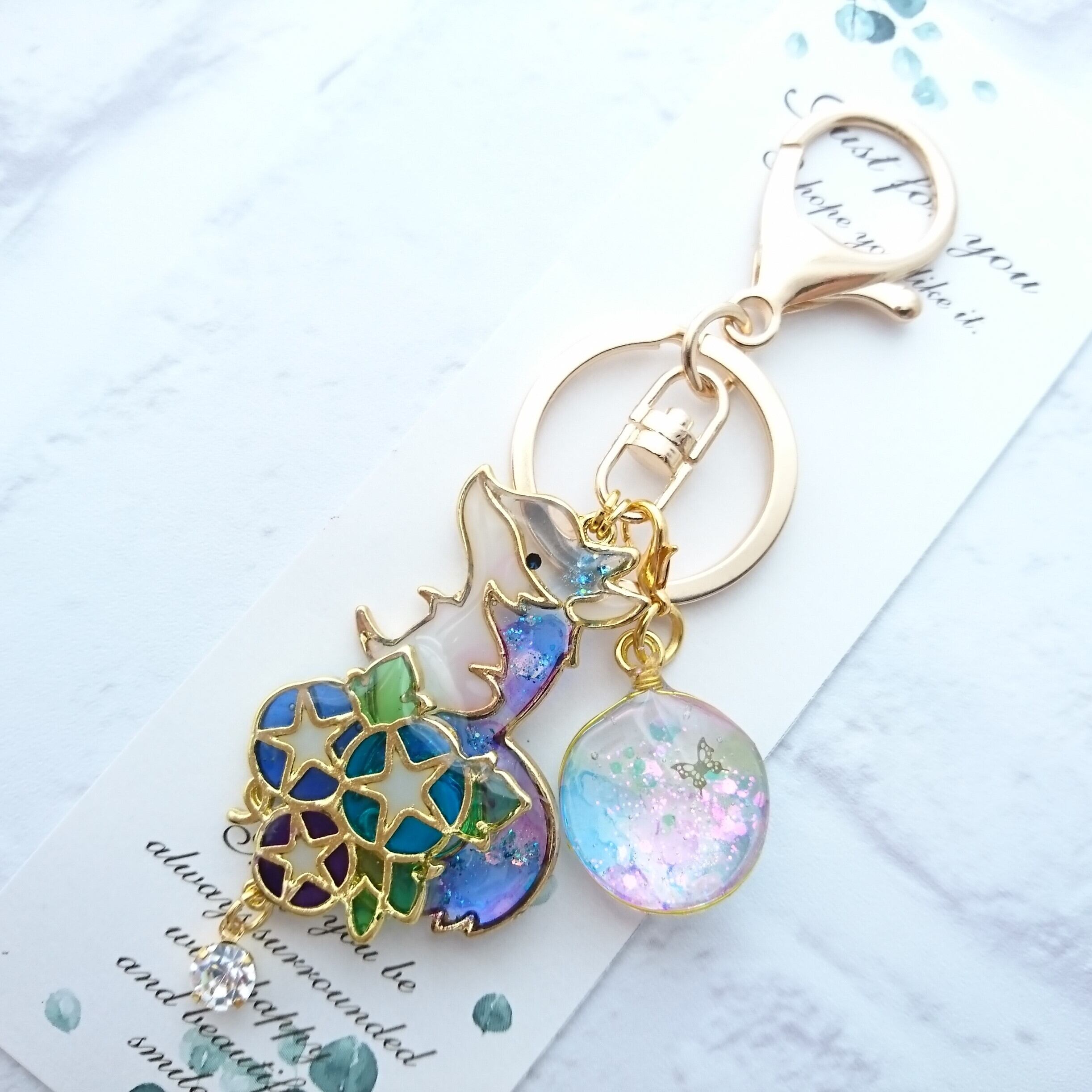 すってんころりんキツネ ✦ 朝顔 ✦ キーホルダー