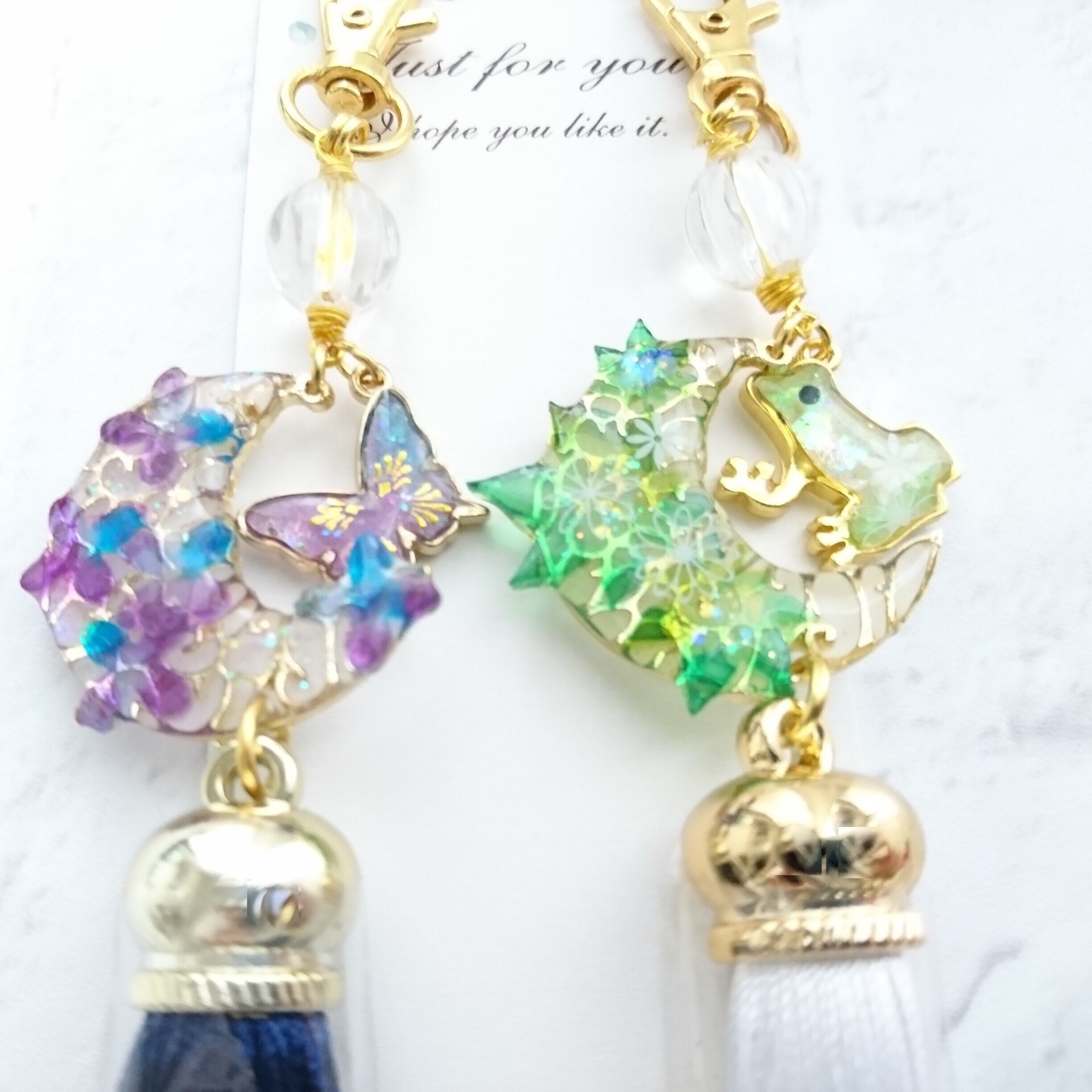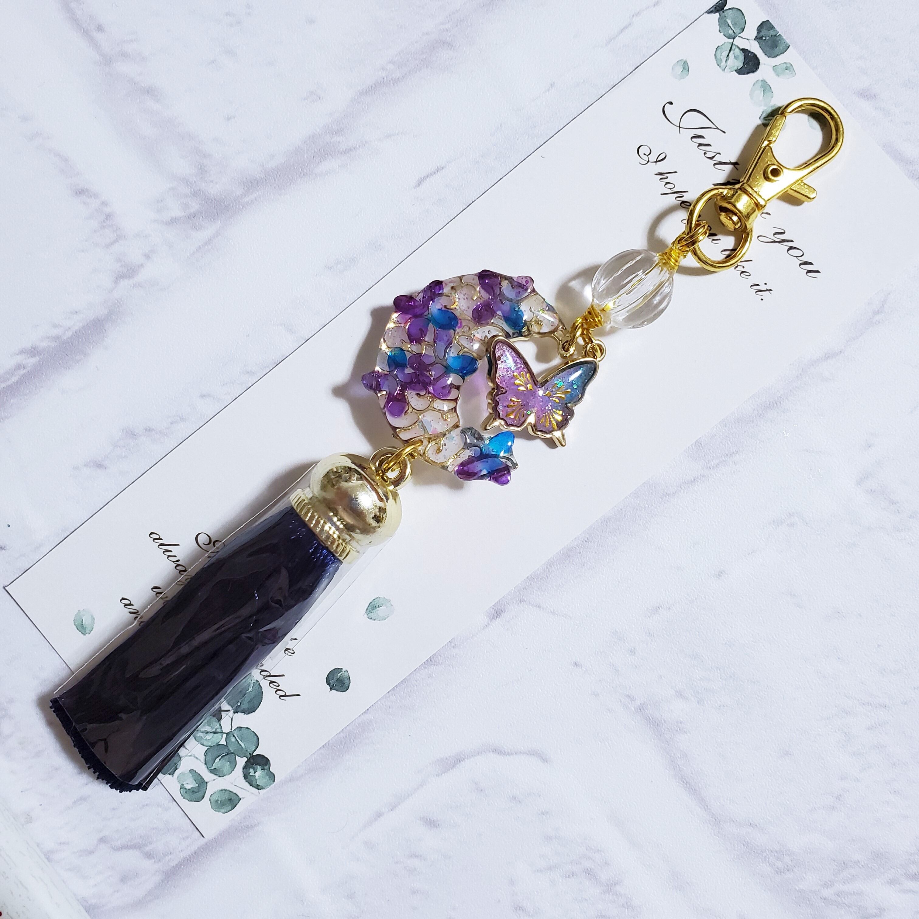 sold out ✦ 紫陽花と蝶 ✦ ロングタッセル紺 ✦ キーホルダー