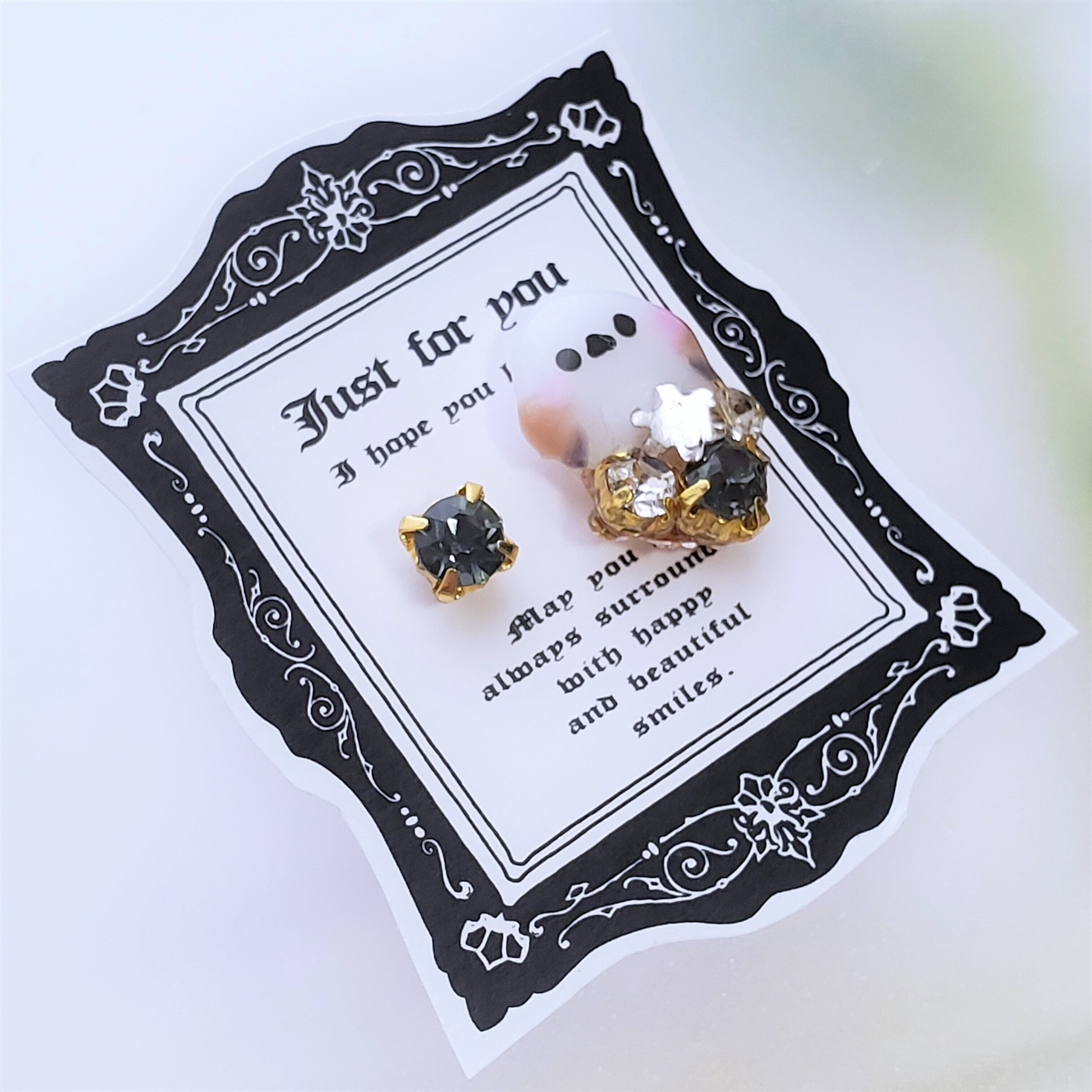 対のピアスは お揃いのスモーキーカラービジューです。