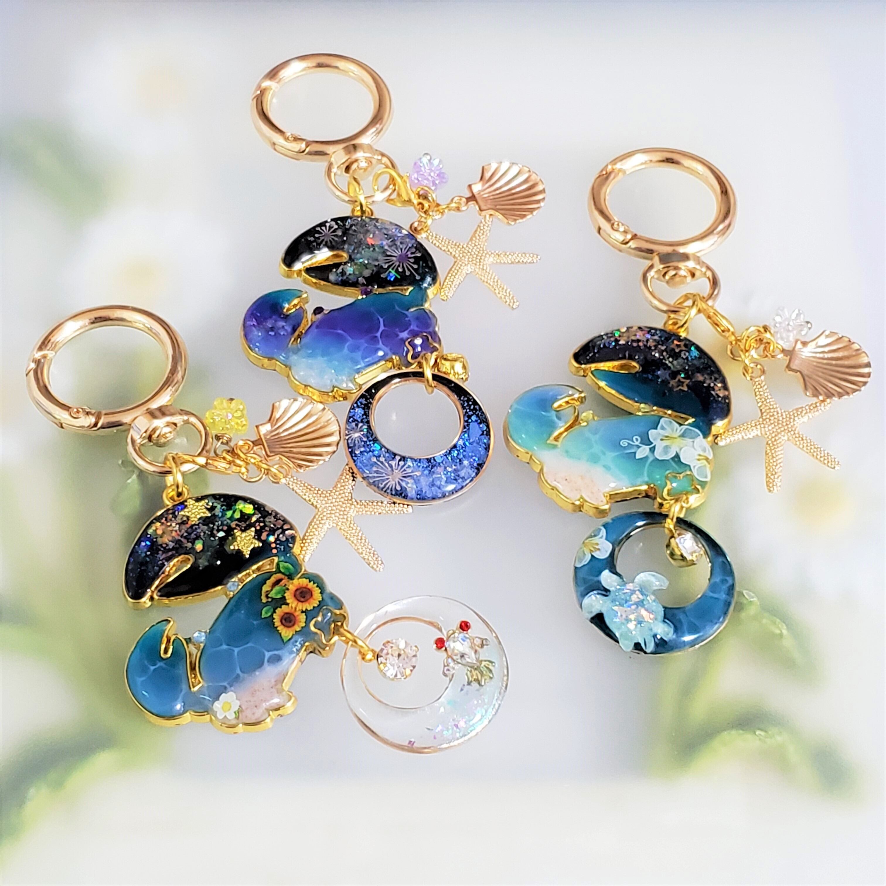 お揃いカラーのチャームは シャラシャラ揺れる海パーツです。