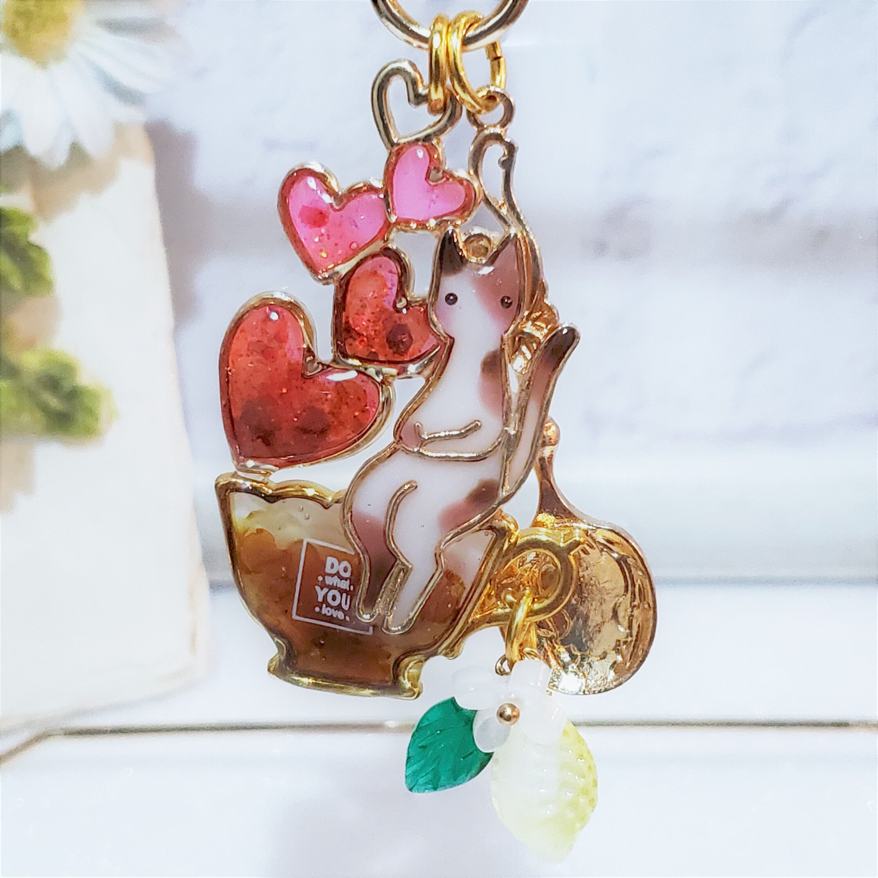 小さなカフェねこ ✦ レモンティ ✦ キーホルダー