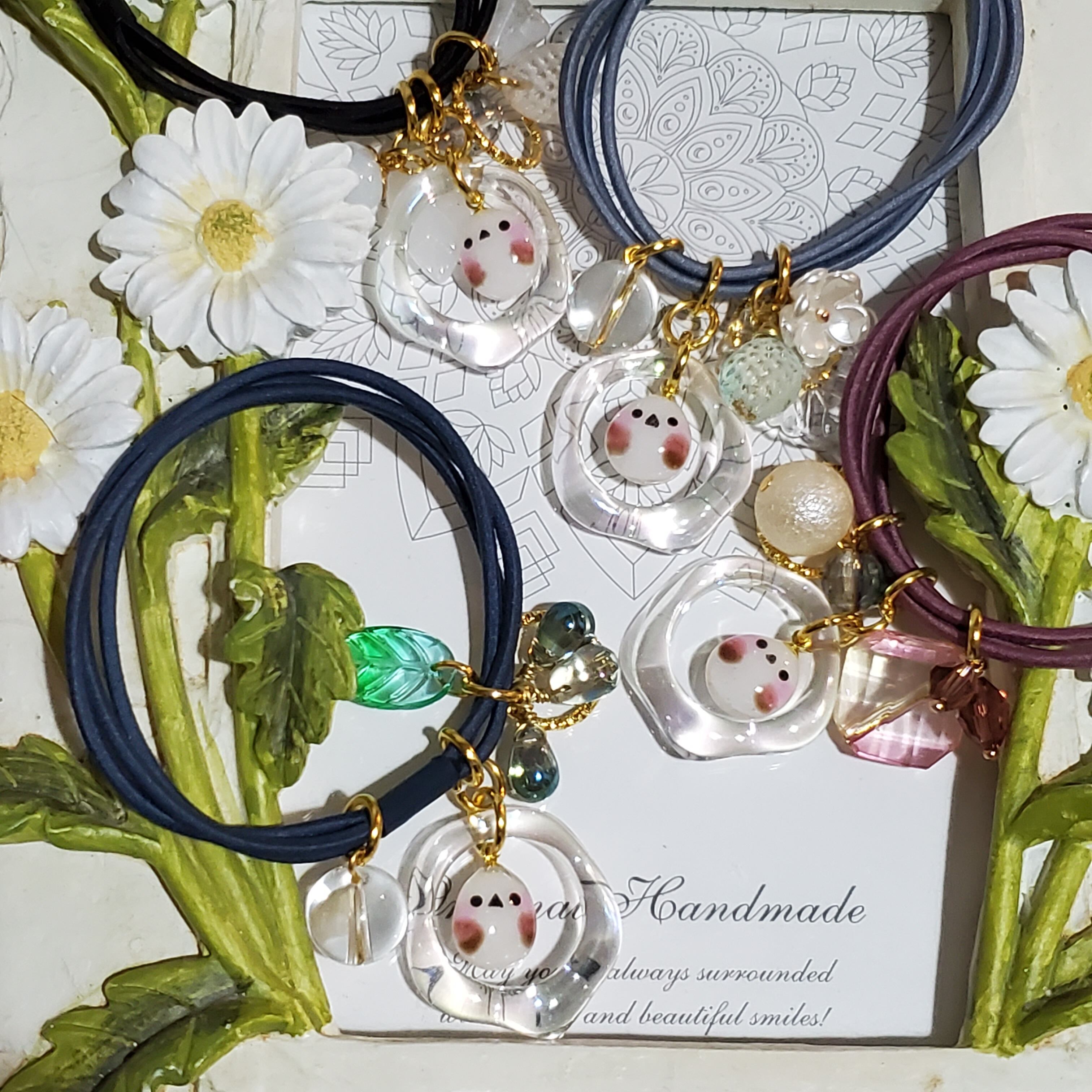ころんとしたシマエナガちゃんのキラキラヘアゴムです♪