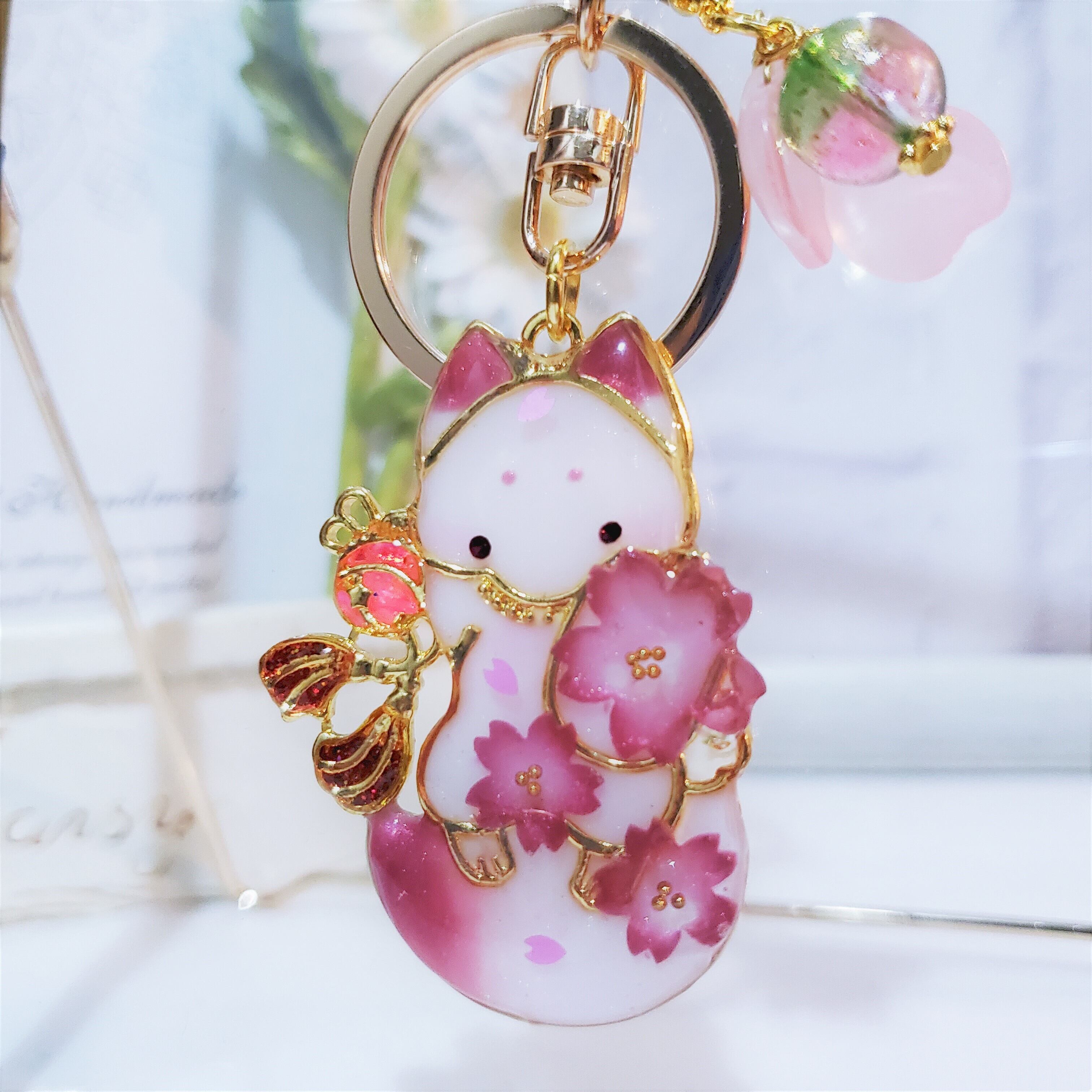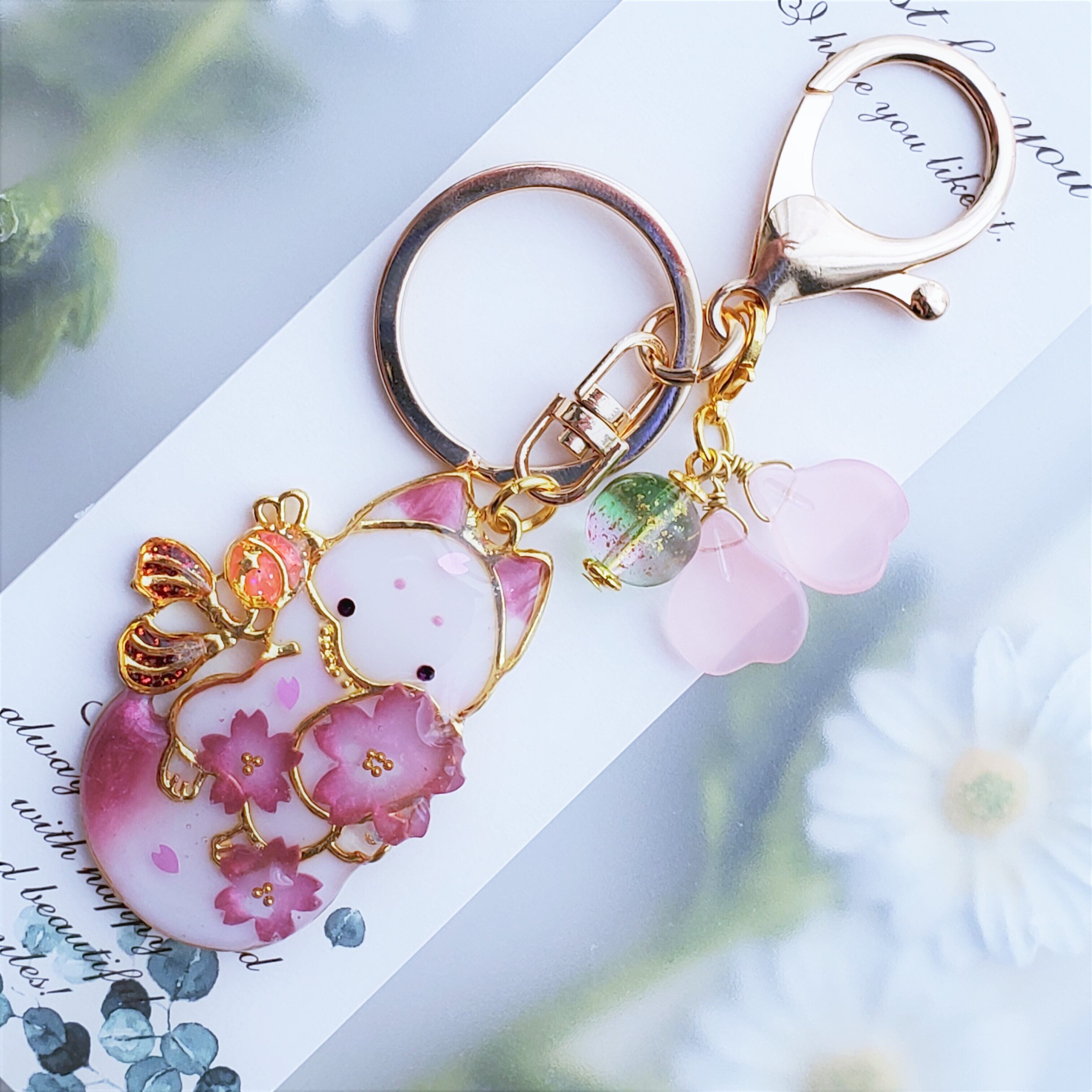 sold out ✦ ふんわりしっぽの招き狛狐 ✦ 京紫桜 ✦ キーホルダー