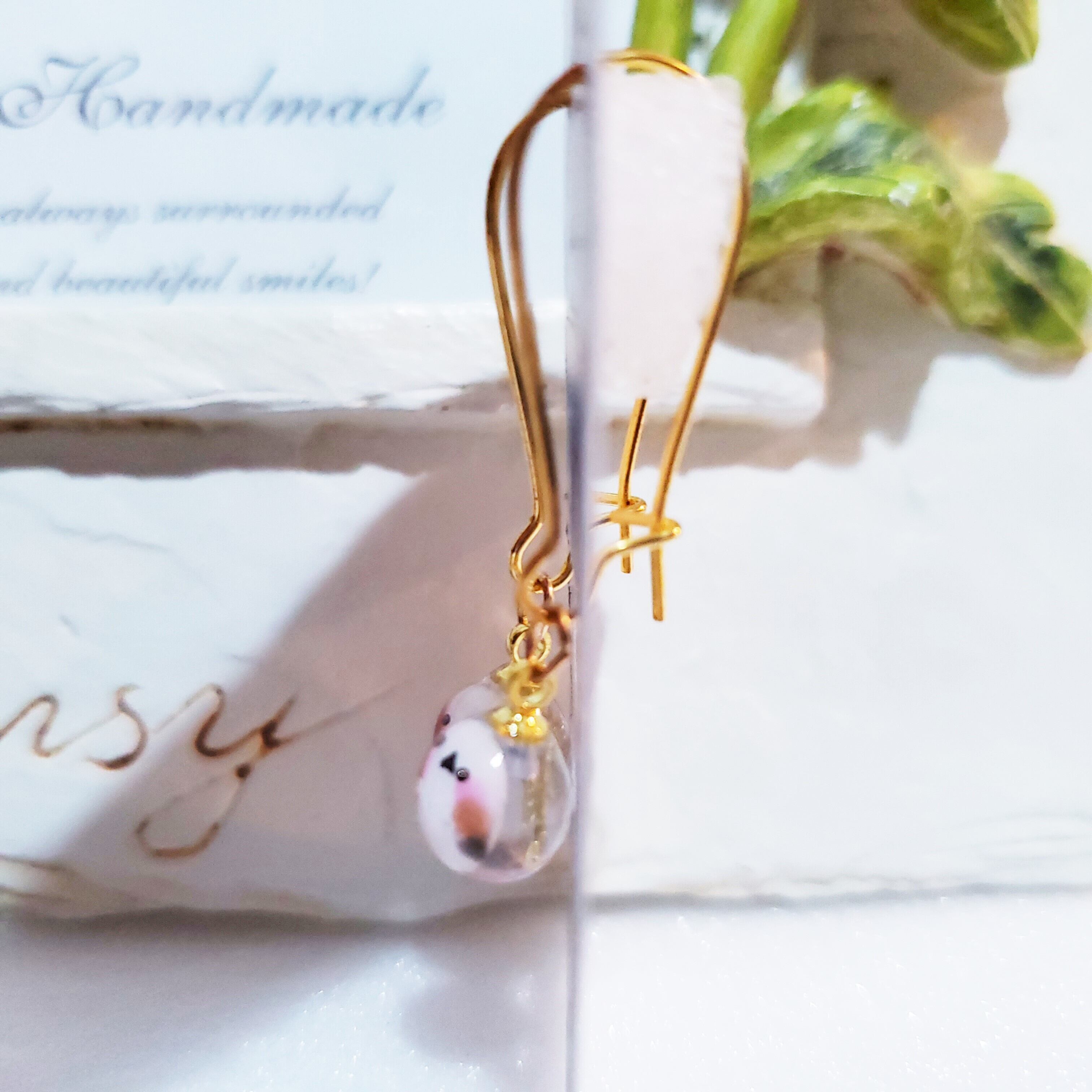 ゴールドフックピアスに 小さなシマエナガちゃんを飾りました♪