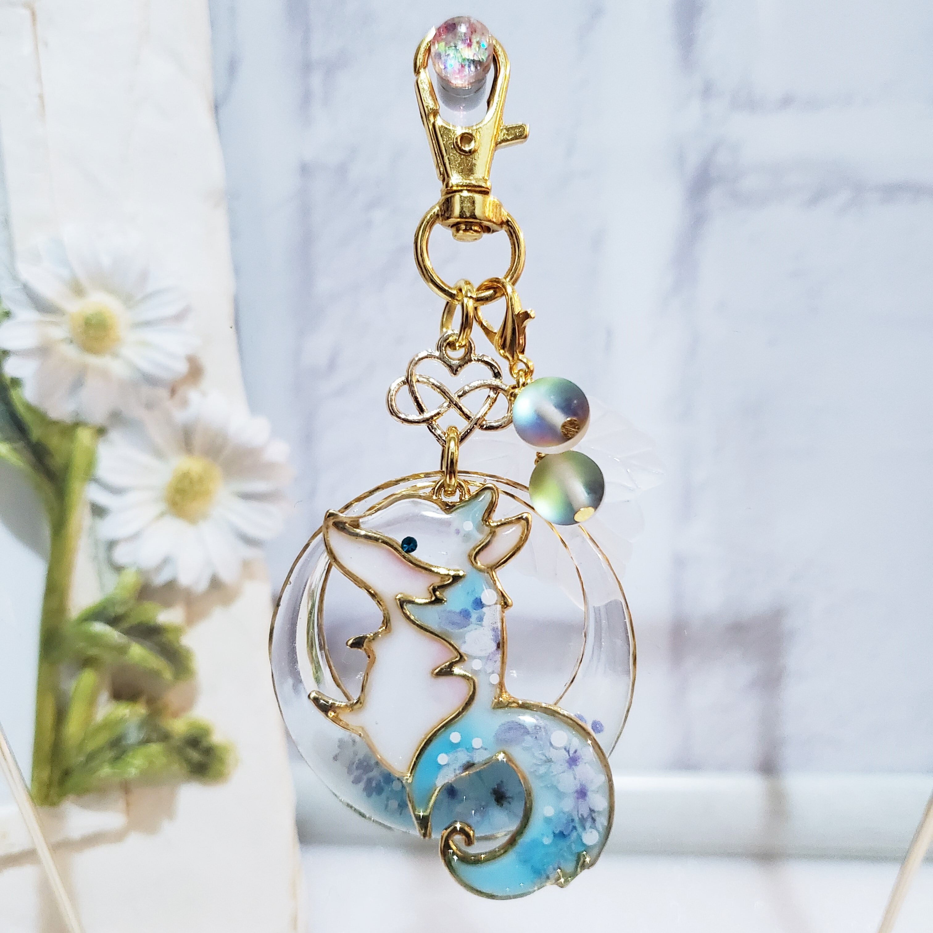 sold out ✦ すってんころりんキツネ ✦ 冬のリース(青) ✦ キーホルダー