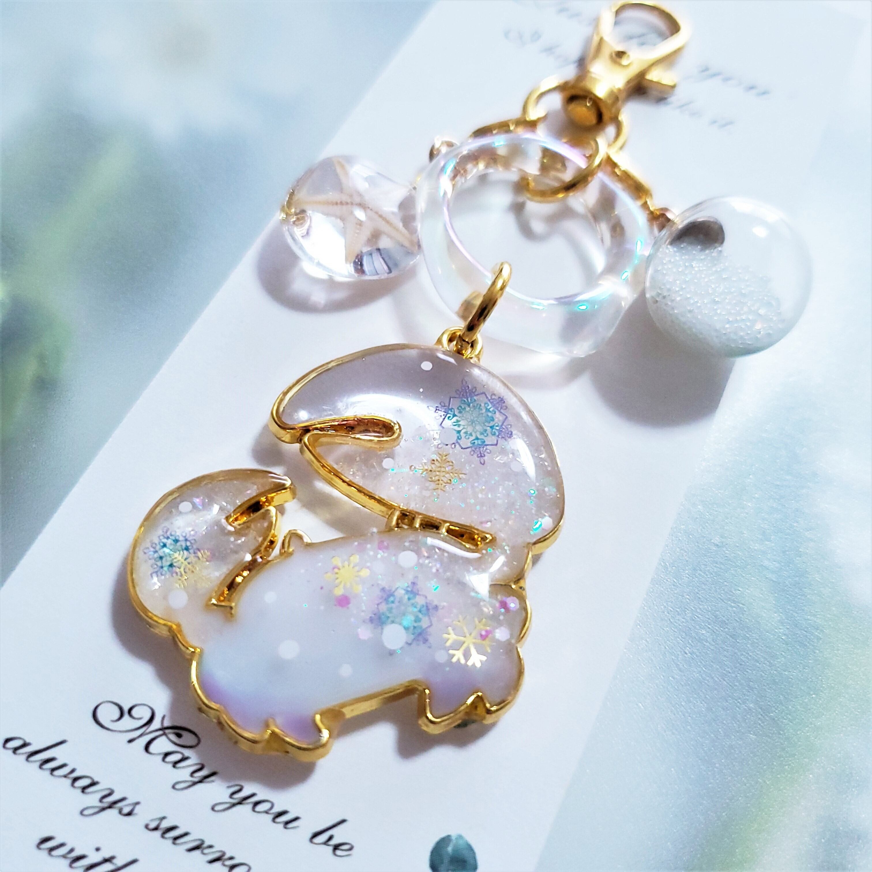 ガラスドームのチャームには 雪や氷をイメージしたカラーで 貝が入っています。