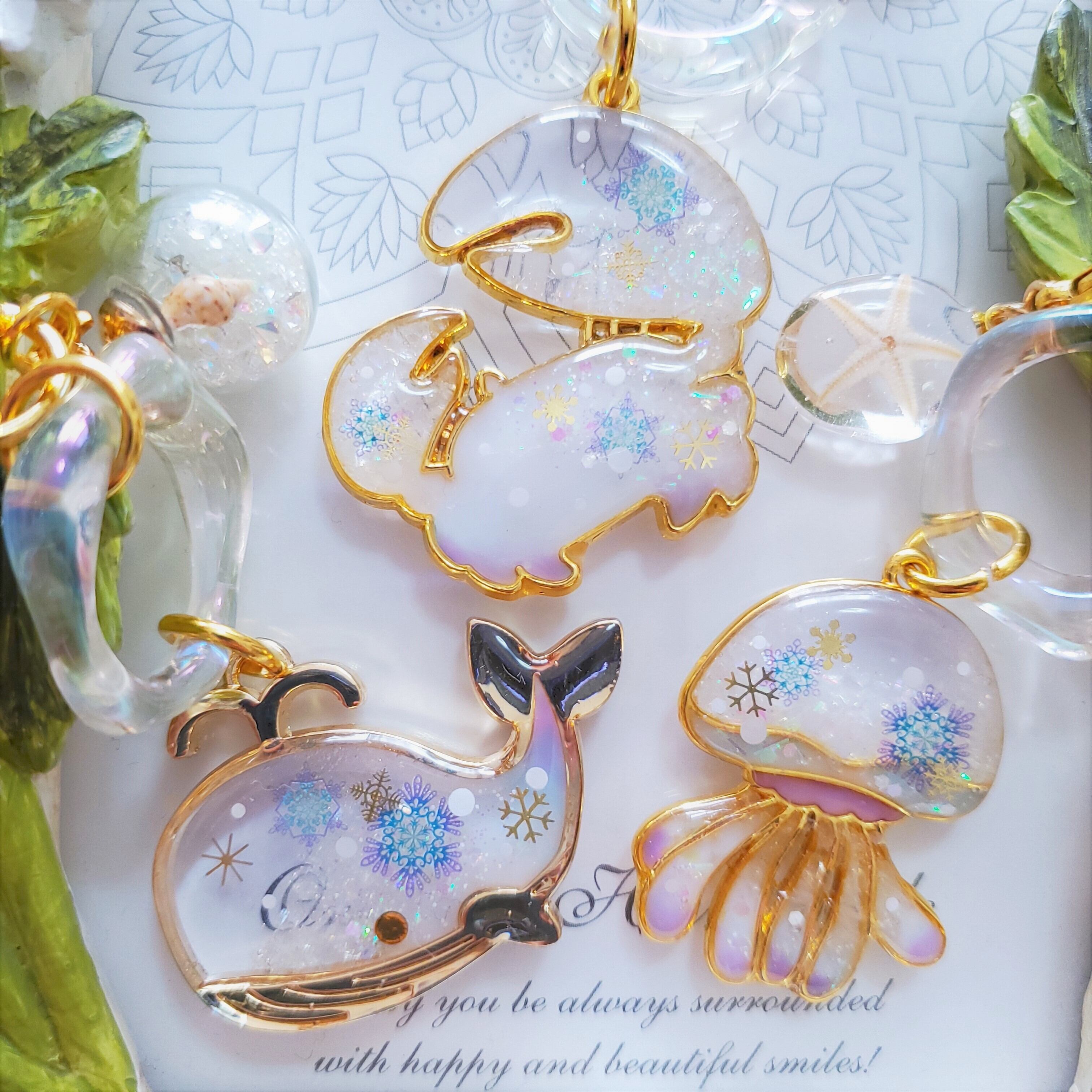 ガラスドームのチャームには 雪や氷をイメージしたカラーで 貝が入っています。