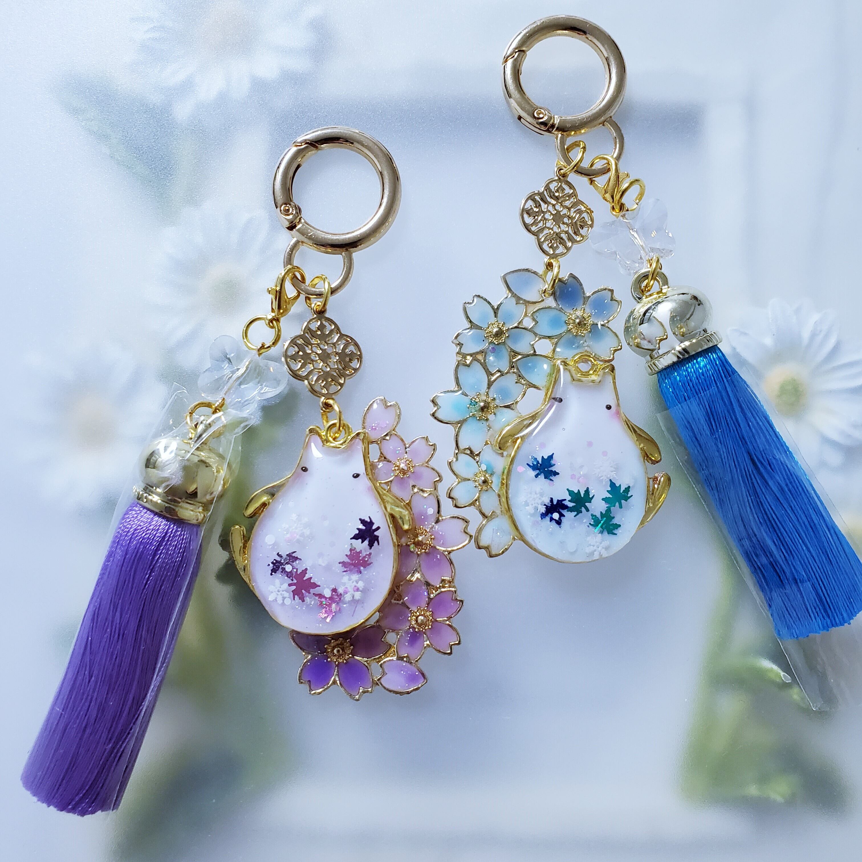sold out ✦ まんまるにゃんこ ✦ 冬桜(紫) ✦ キーホルダー