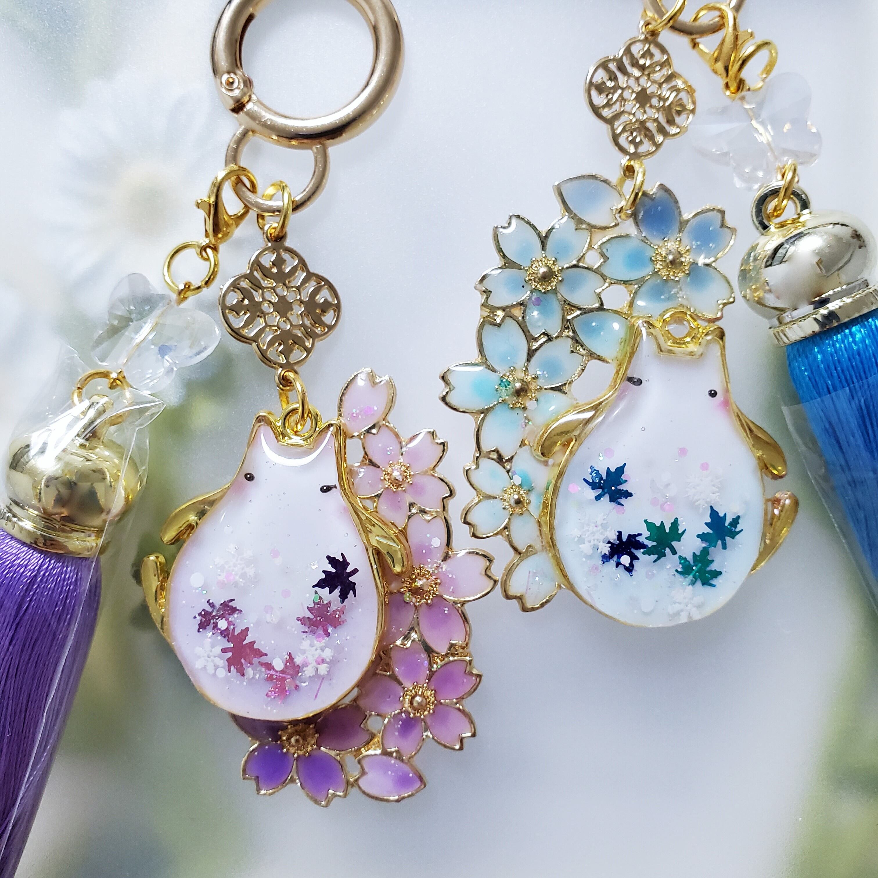 タッセルはお揃いカラー&蝶のガラスチャームでおめかししました。