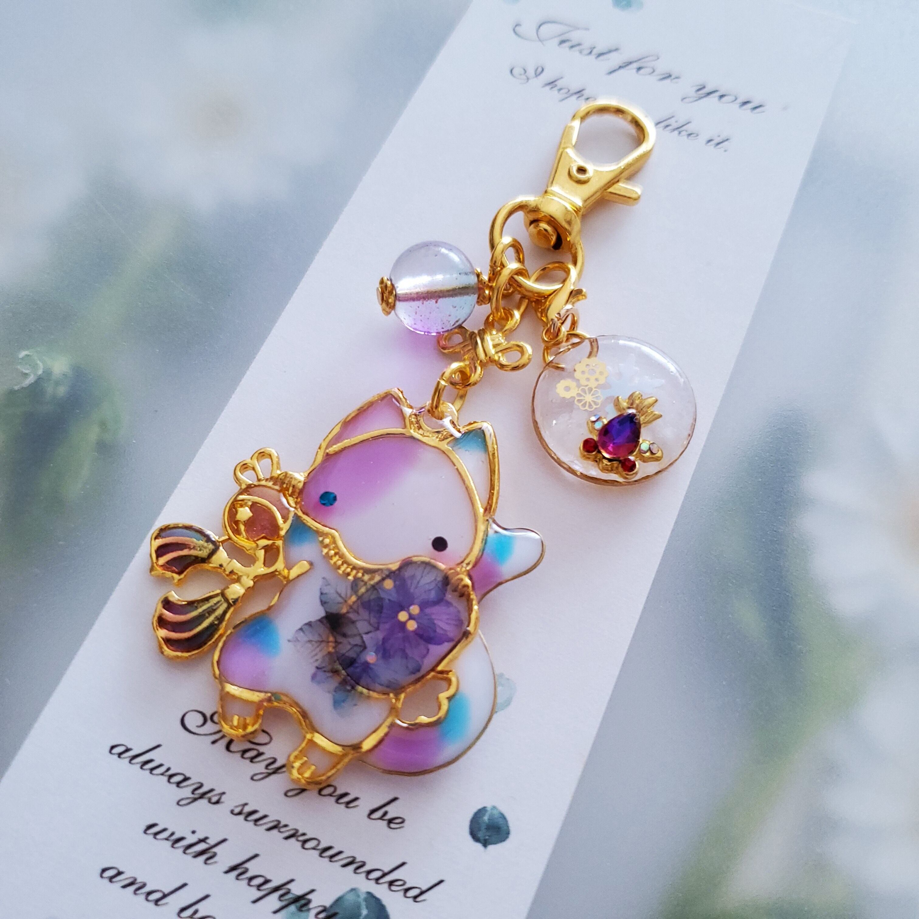するりんしっぽの招き猫 ✦ 紫三毛 ✦ キーホルダー