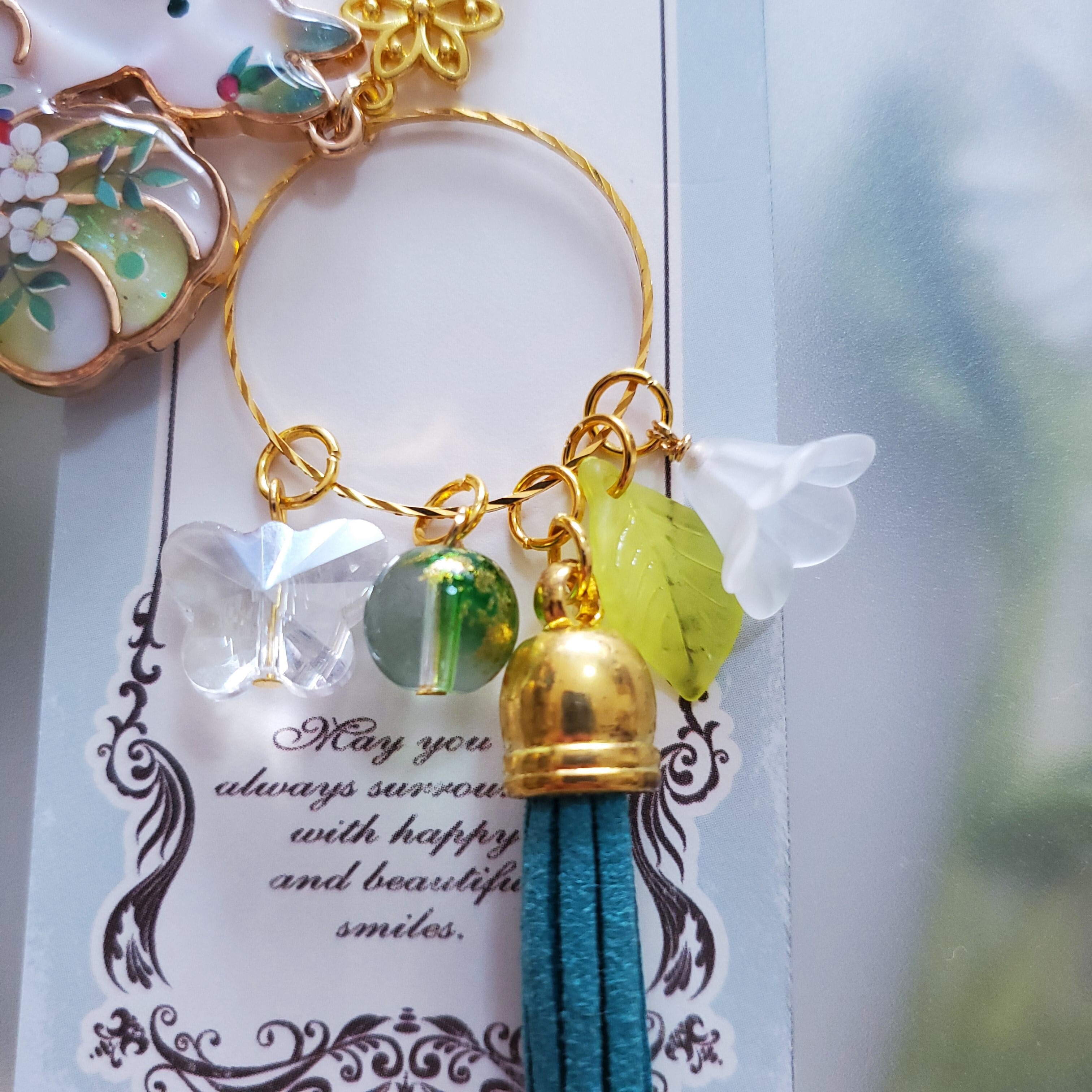 チャームには お花や蝶を飾って可愛らしくなりました。