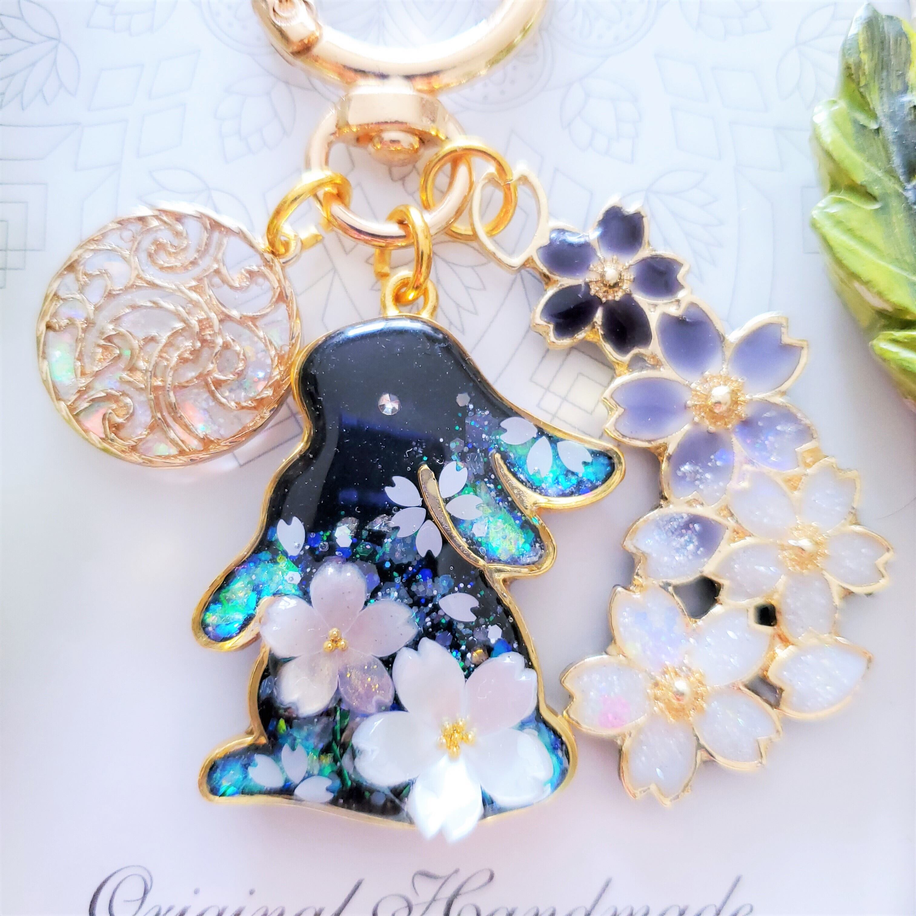 桜うさぎ ✦ 螺鈿 ✦ キーホルダー