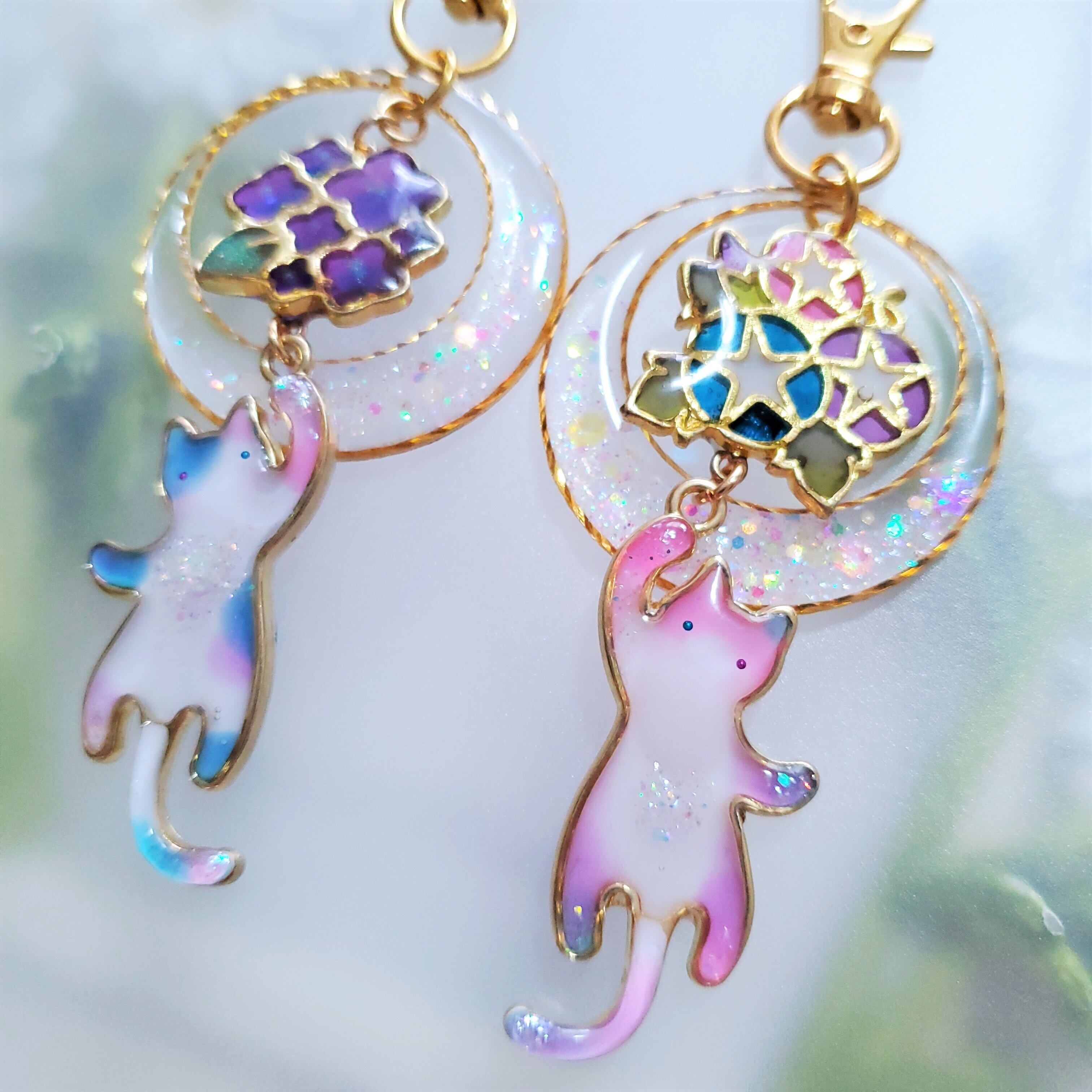 雨上がりにゃんこ ✦ 朝顔 ✦ キーホルダー